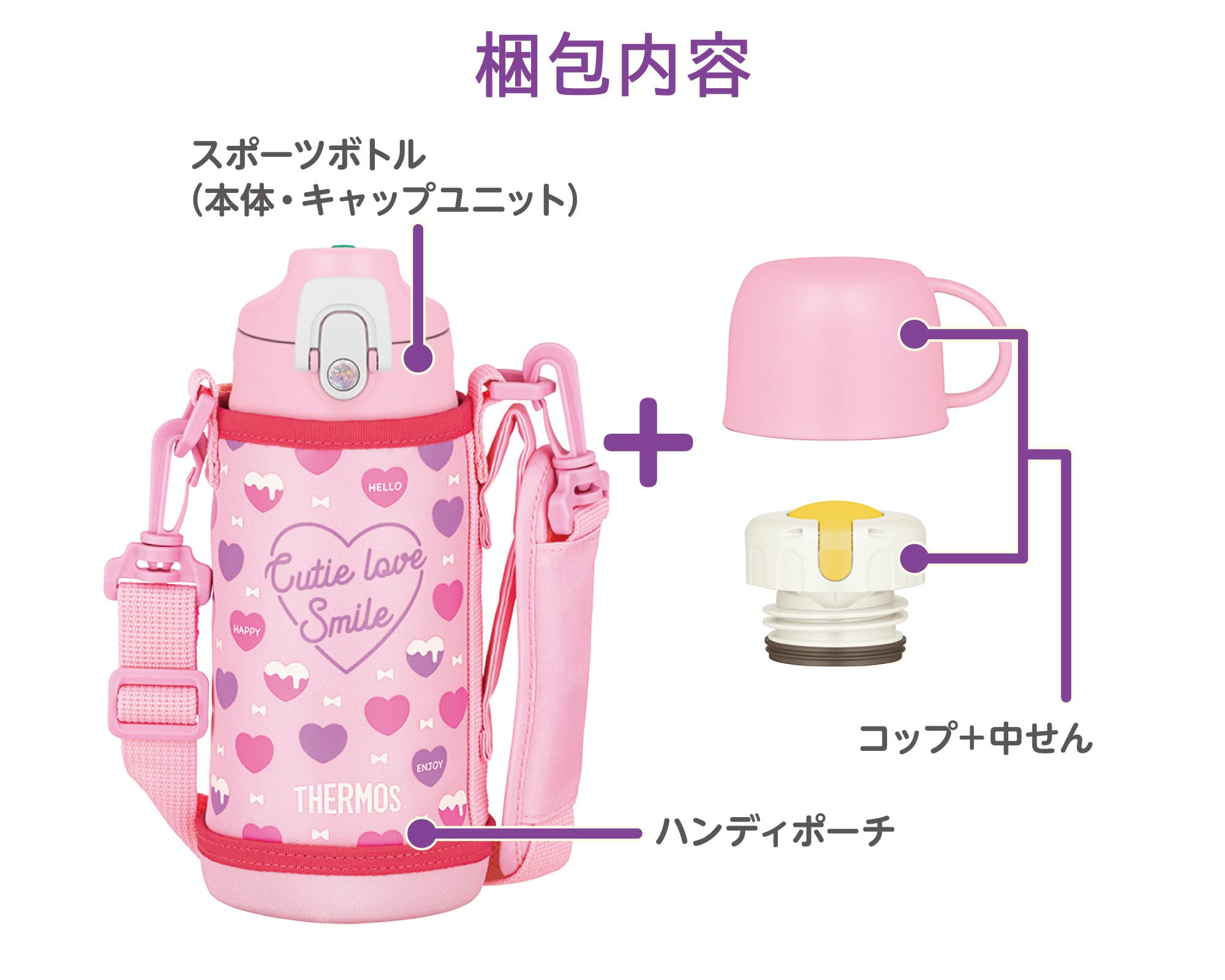 直接飲める保冷専用スポーツボトル、コップと中せんを付けて、保温・保冷対応のステンレスボトルにもなる2ウェイボトル。専用ポーチ付き