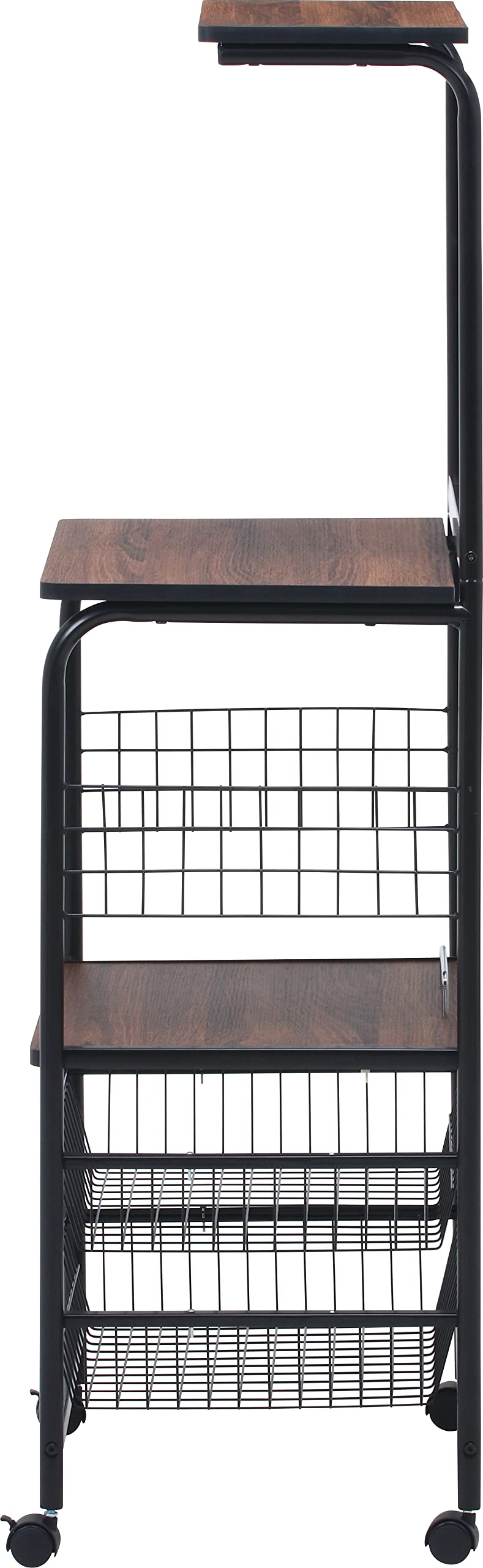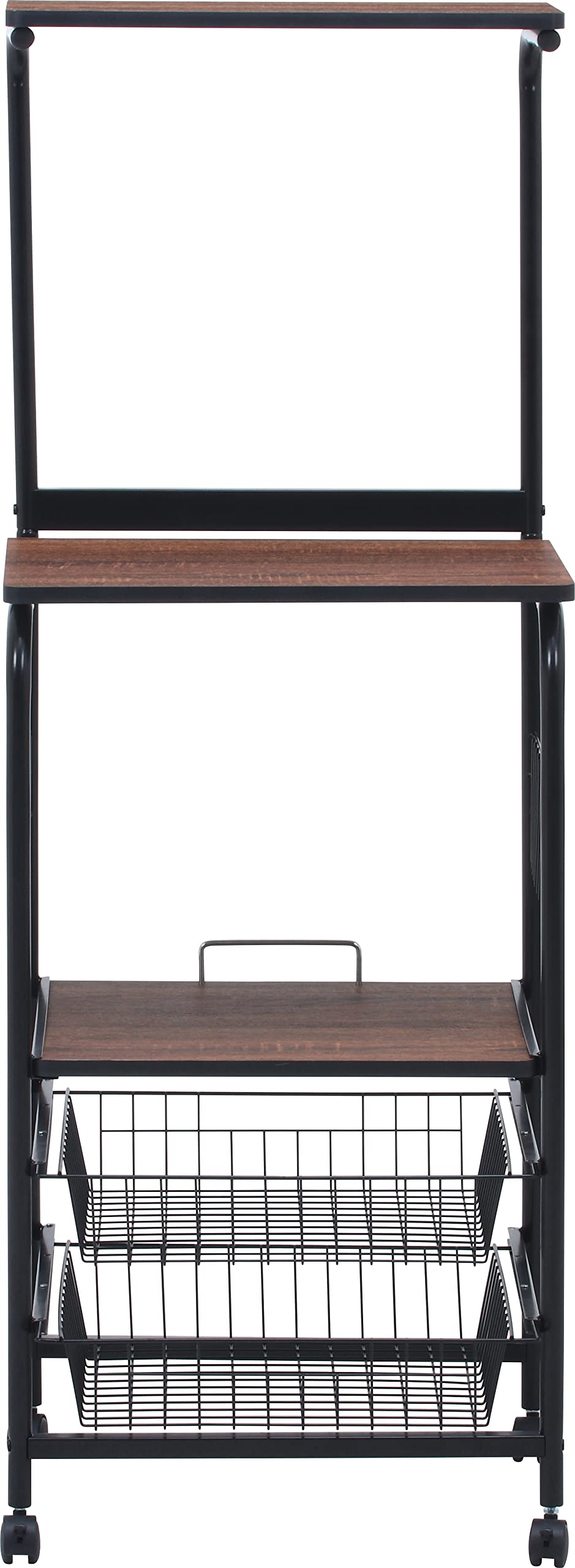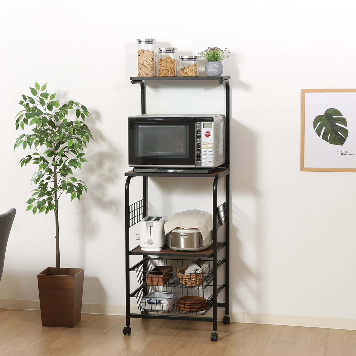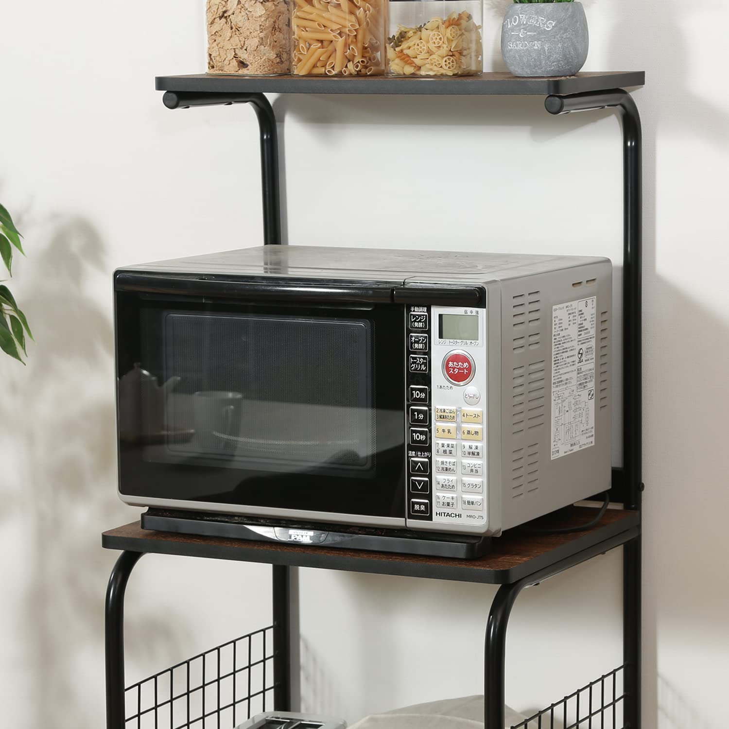 不二貿易 レンジ台 キッチンラック 幅51.5×奥行41×高さ140.5cm ブラック ブラウン スライド棚 収納 レンジワゴン キャスター付き 14637