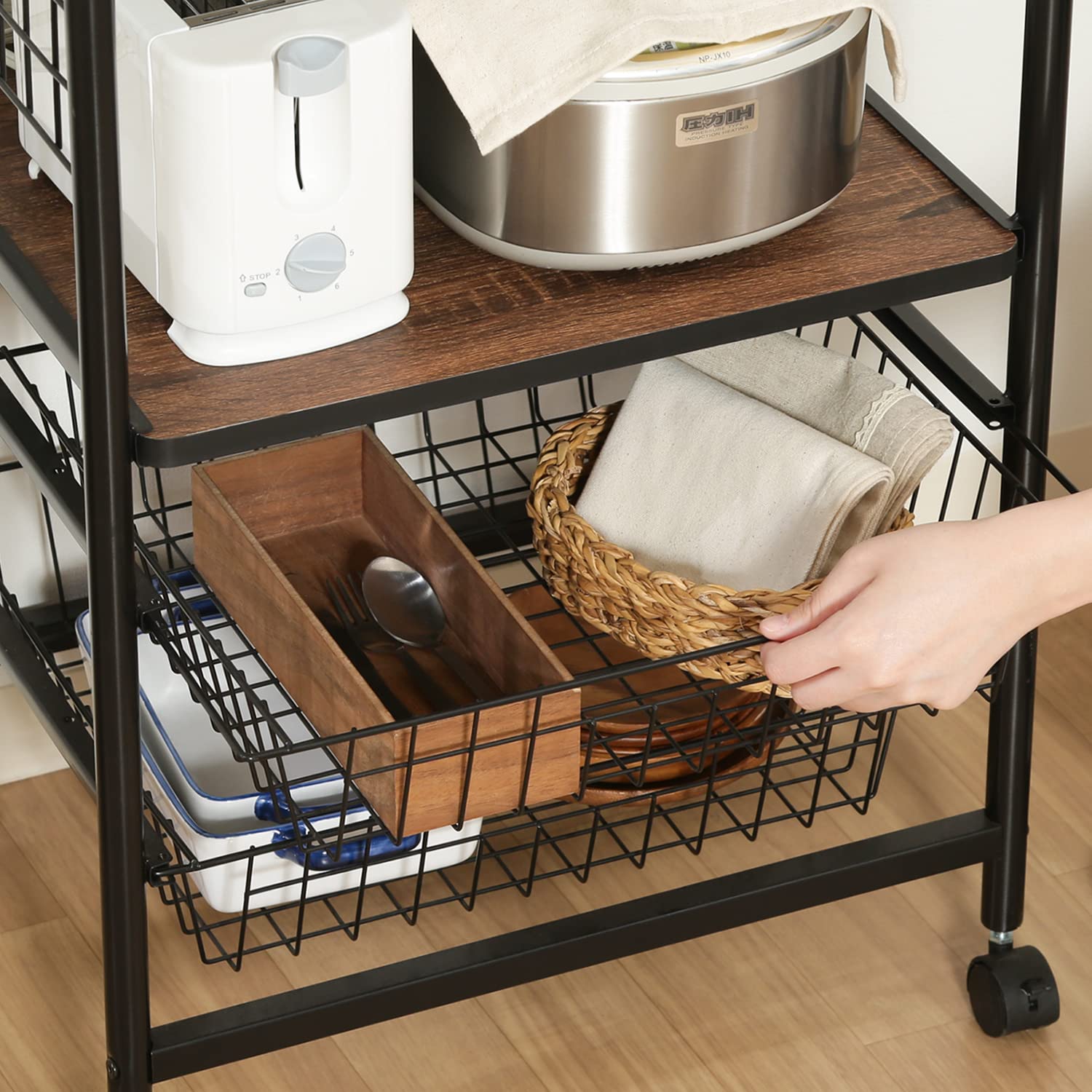 バスケット2杯付きで、小物や食品ストックもまとめて収納できる