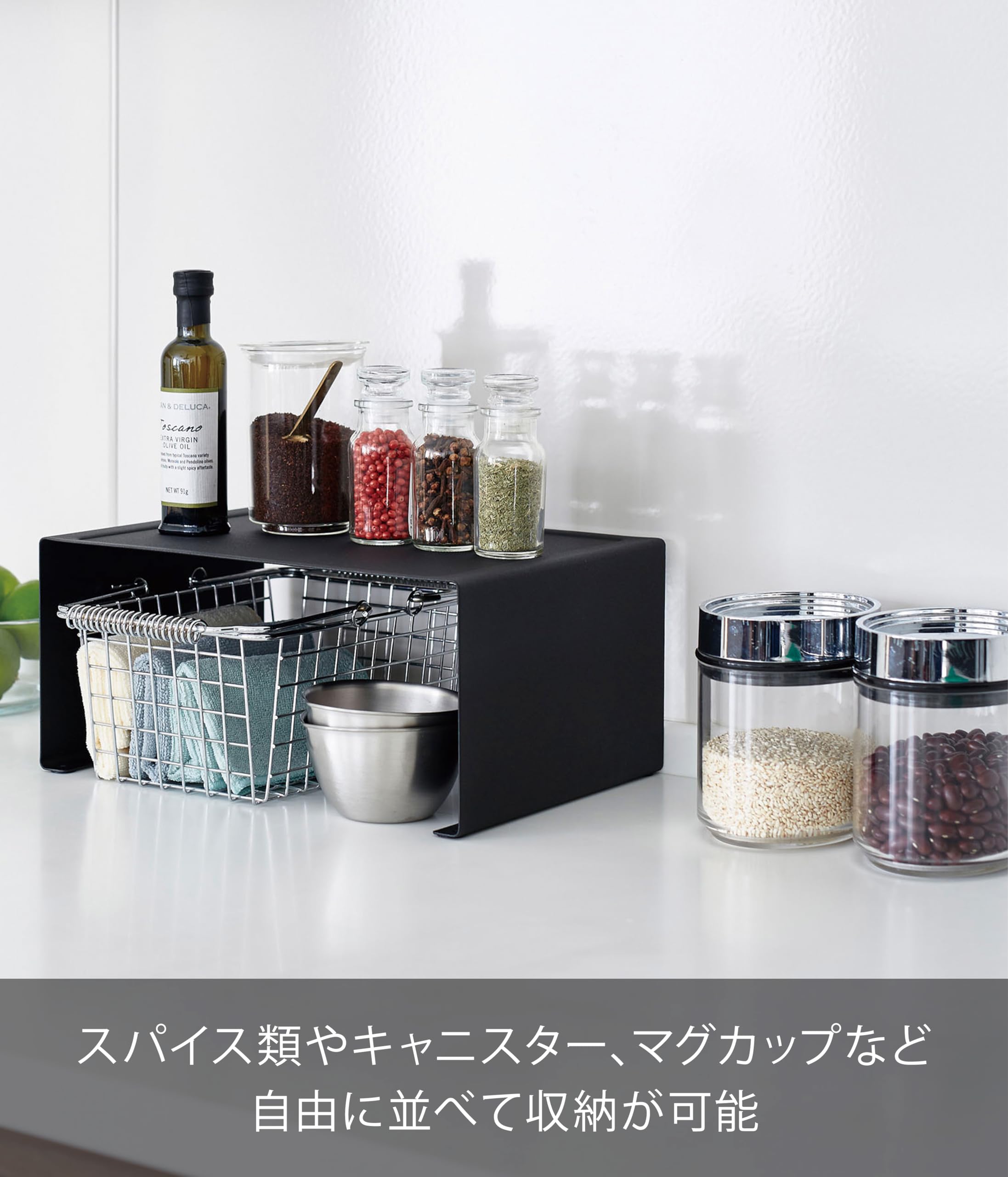 散らかりがちなキッチン棚を省スペースで有効利用。
