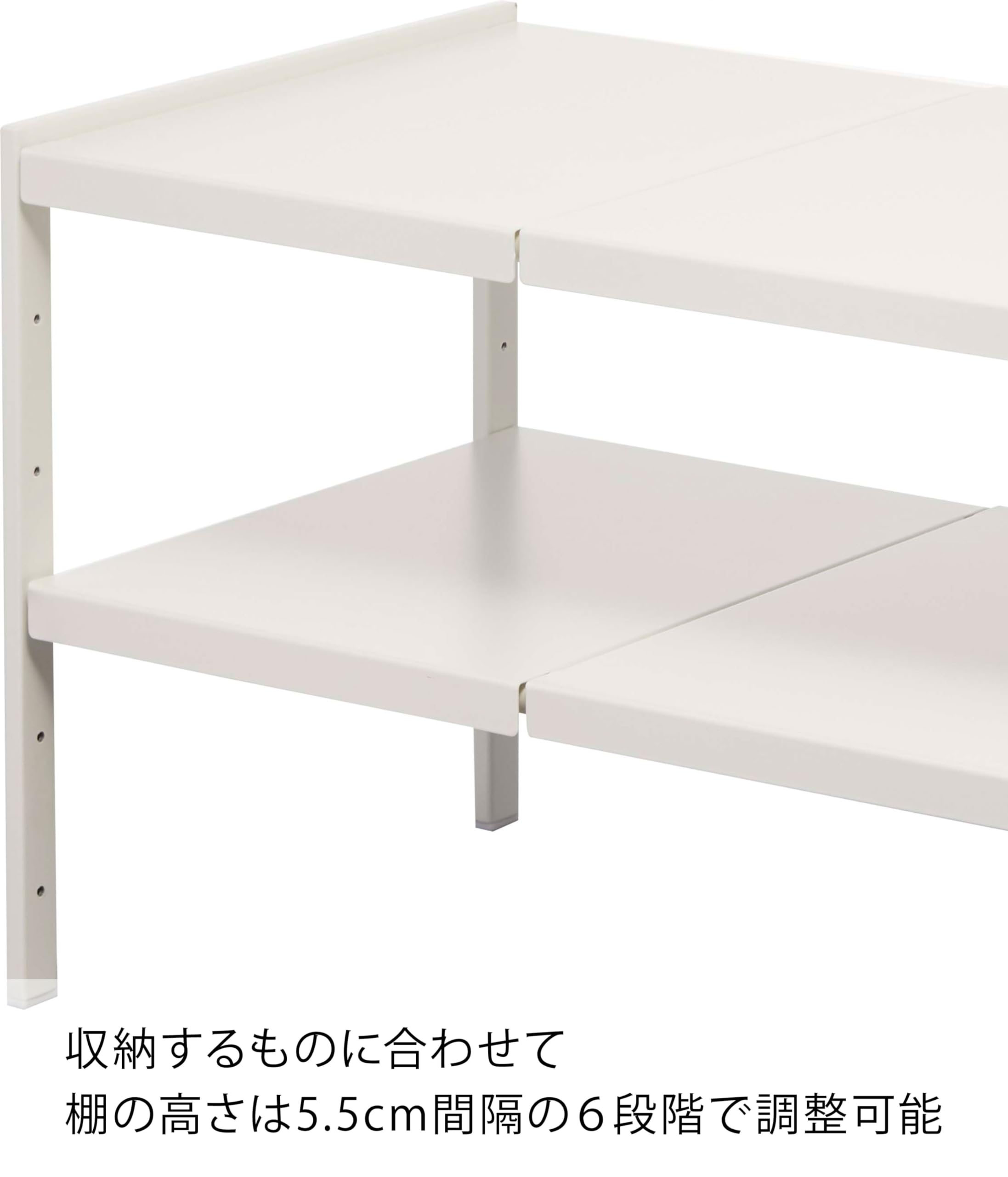 収納するものの高さに合わせて、棚の高さは5.5cmごとに調整できます。