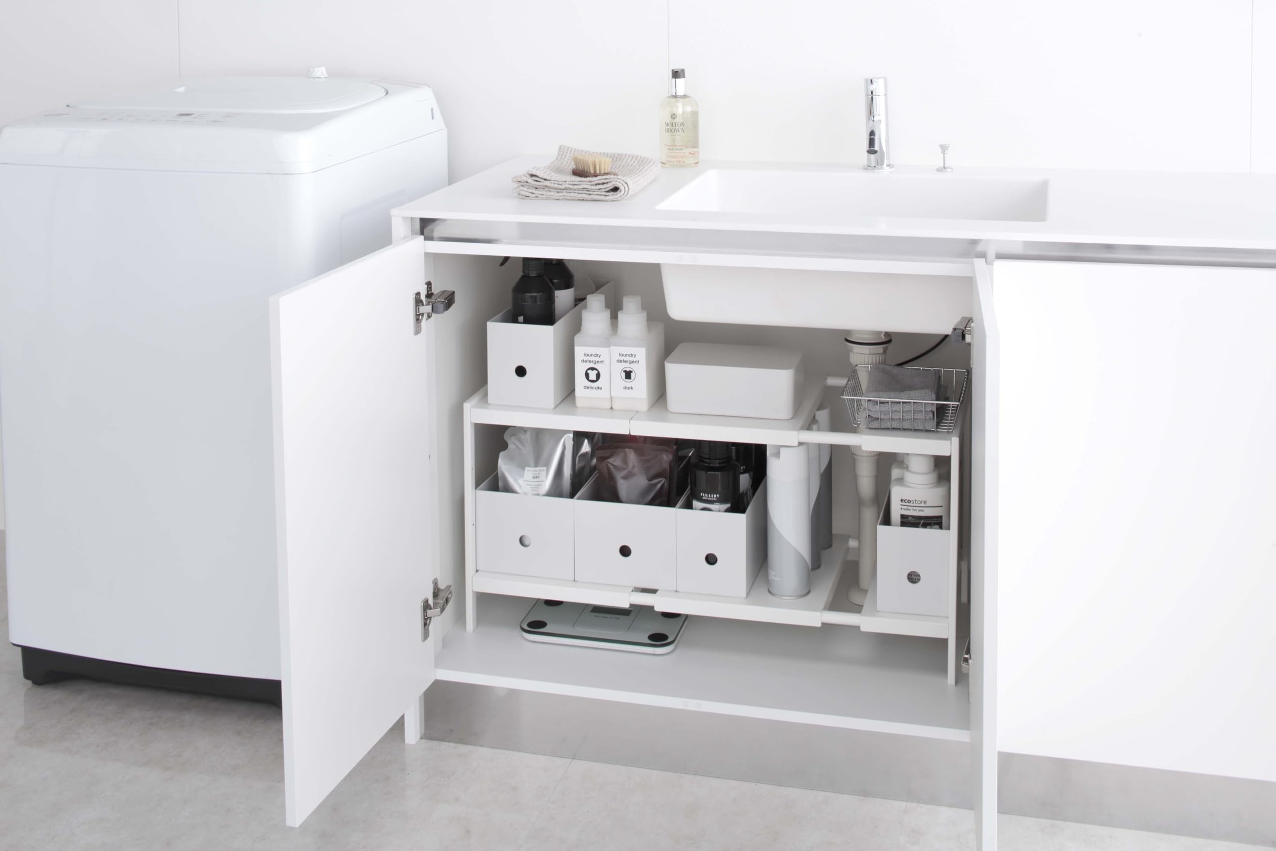 山崎実業(Yamazaki) 伸縮 シンク下ラック 2段 D30 ホワイト 約W50~85XD30XH35cm タワー tower シンク下 収納 6段階高さ調節 横幅調節 4948