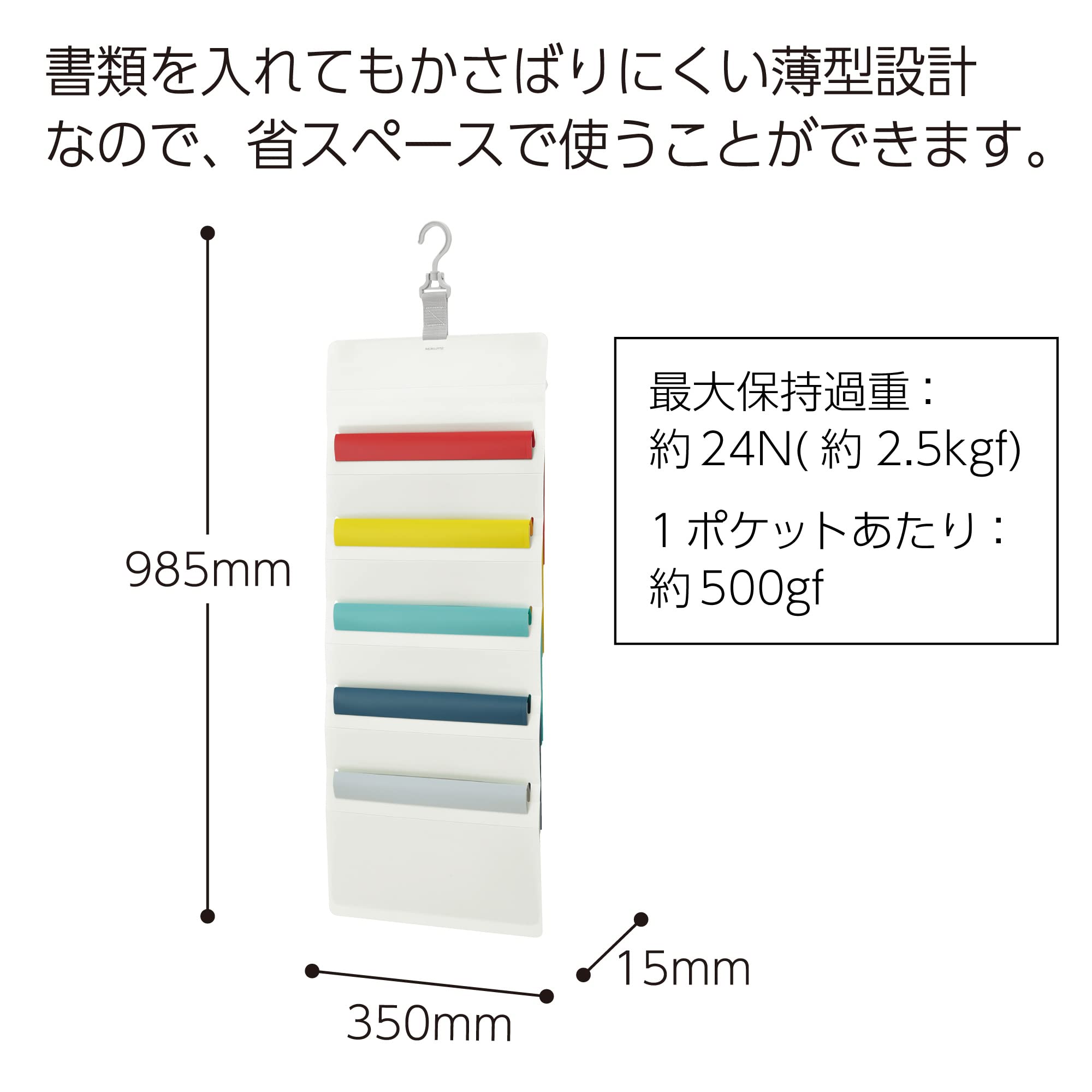 コクヨ(KOKUYO) ウォールポケット 壁掛け 収納 さっと出し入れできる 書類用 5ポケット マルチカラー フ-KPM50-3