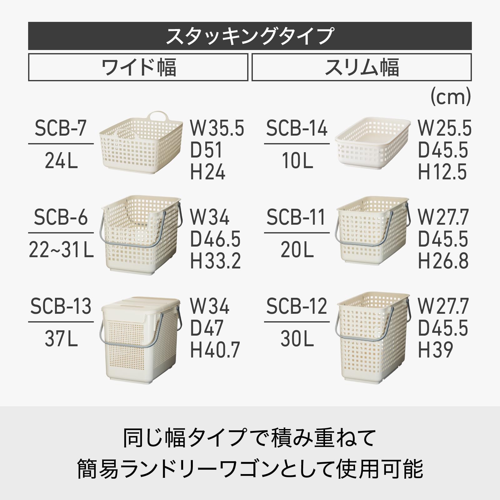 【大特価商品】ライクイット(like-it) 洗濯カゴ スタッキング可能 持ち手付き ランドリーサポート バスケット 約幅34 奥46.5 高33.2cm ホワイト 日本製 SCB-6 ランドリー収納 | ももくま屋さん