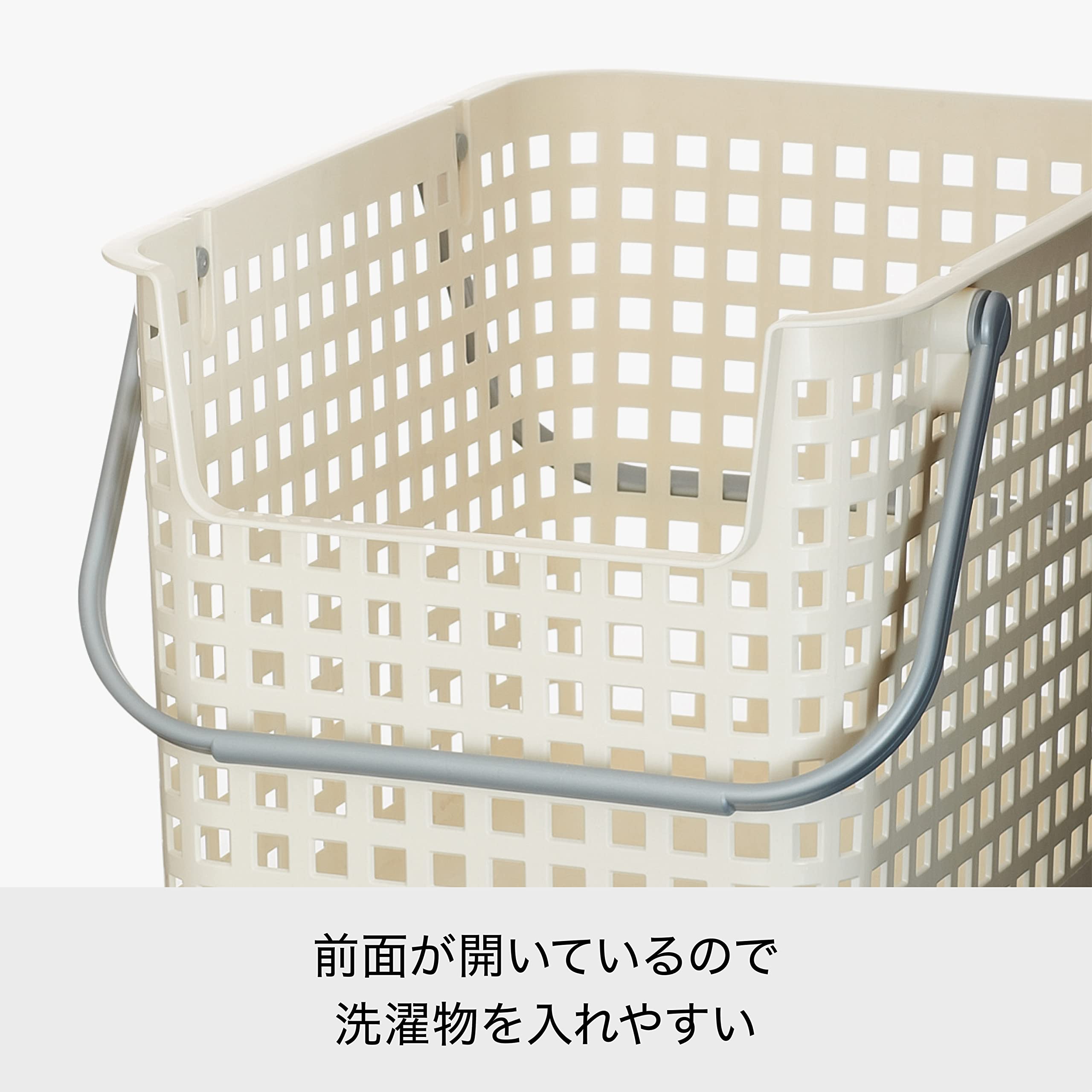 シーンによって選べる洗濯や収納に便利なバスケットシリーズ。取っ手付きで持ち運びに便利です。棚やカラーボックスの収納にも便利です。バスケットの取っ手を立てて固定することで、バスケット同士を積み重ねることができます。
