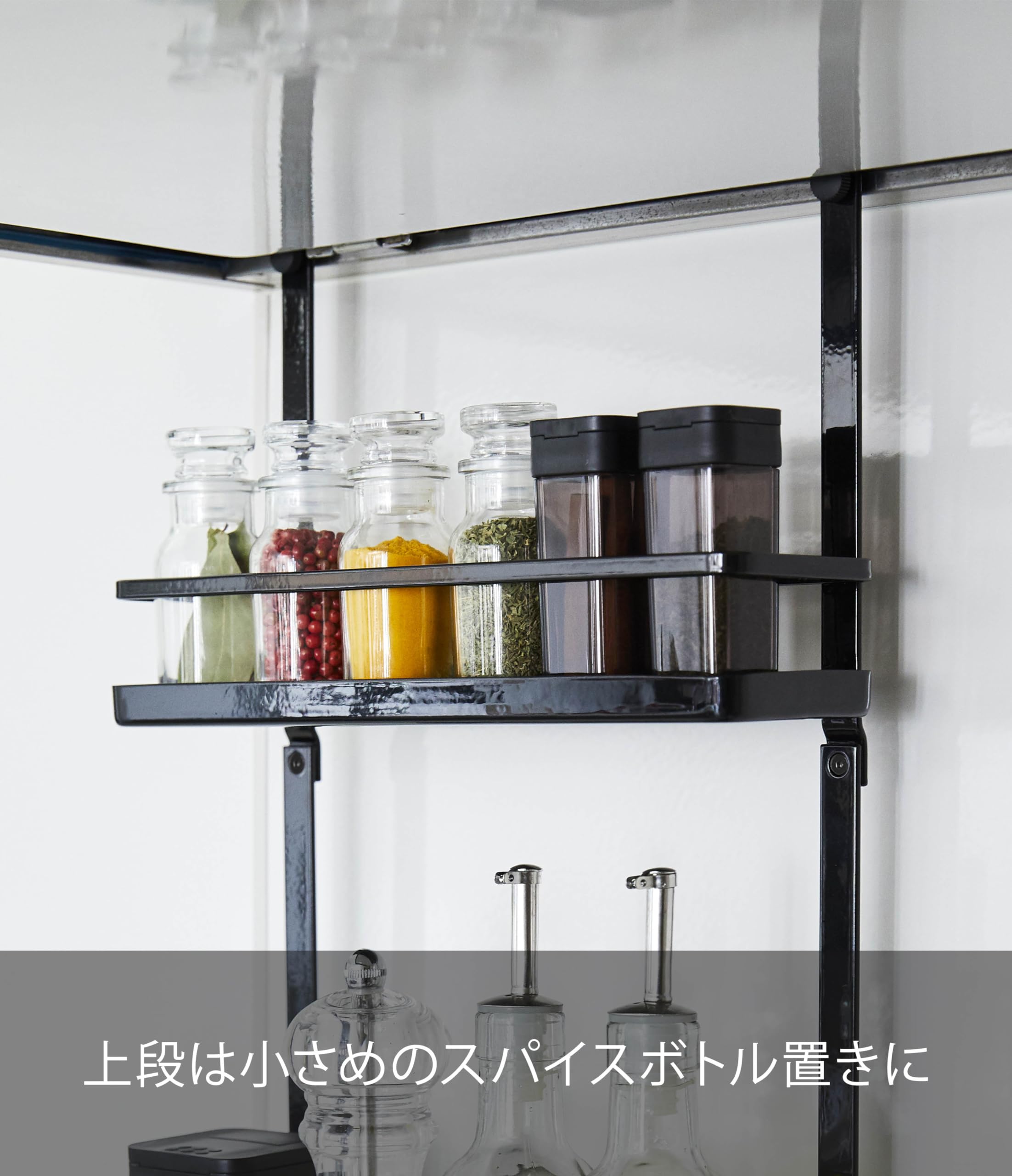 スパイスや調味料の収納スペースに!使いたいときにサッと使える便利な大容量3段ラック!塩・コショウ・オイルなど、よく使う調味料を手元に収納できるトレー。