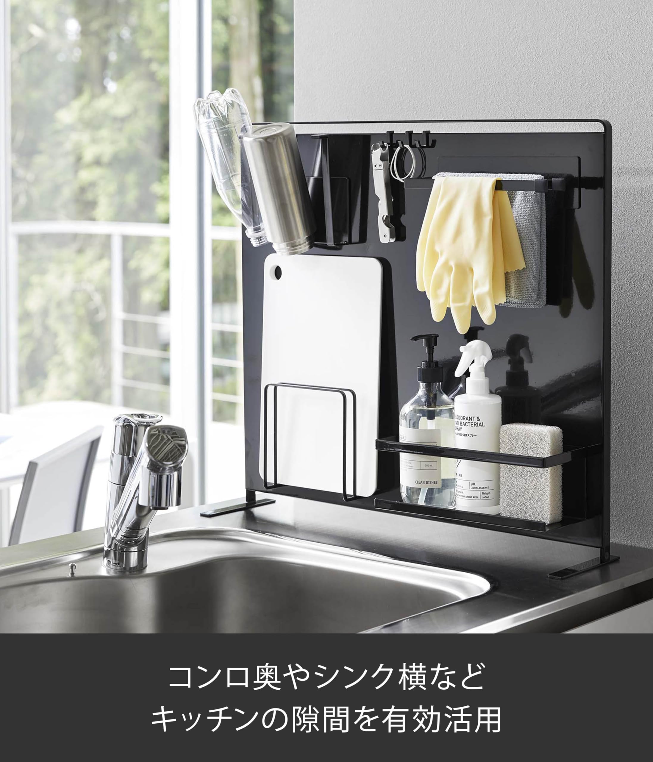 山崎実業(Yamazaki) キッチン 自立式 スチールパネル 縦型 ブラック 約W56XD14XH51.5cm タワー 浮かせる収納 簡単取り付け 5125