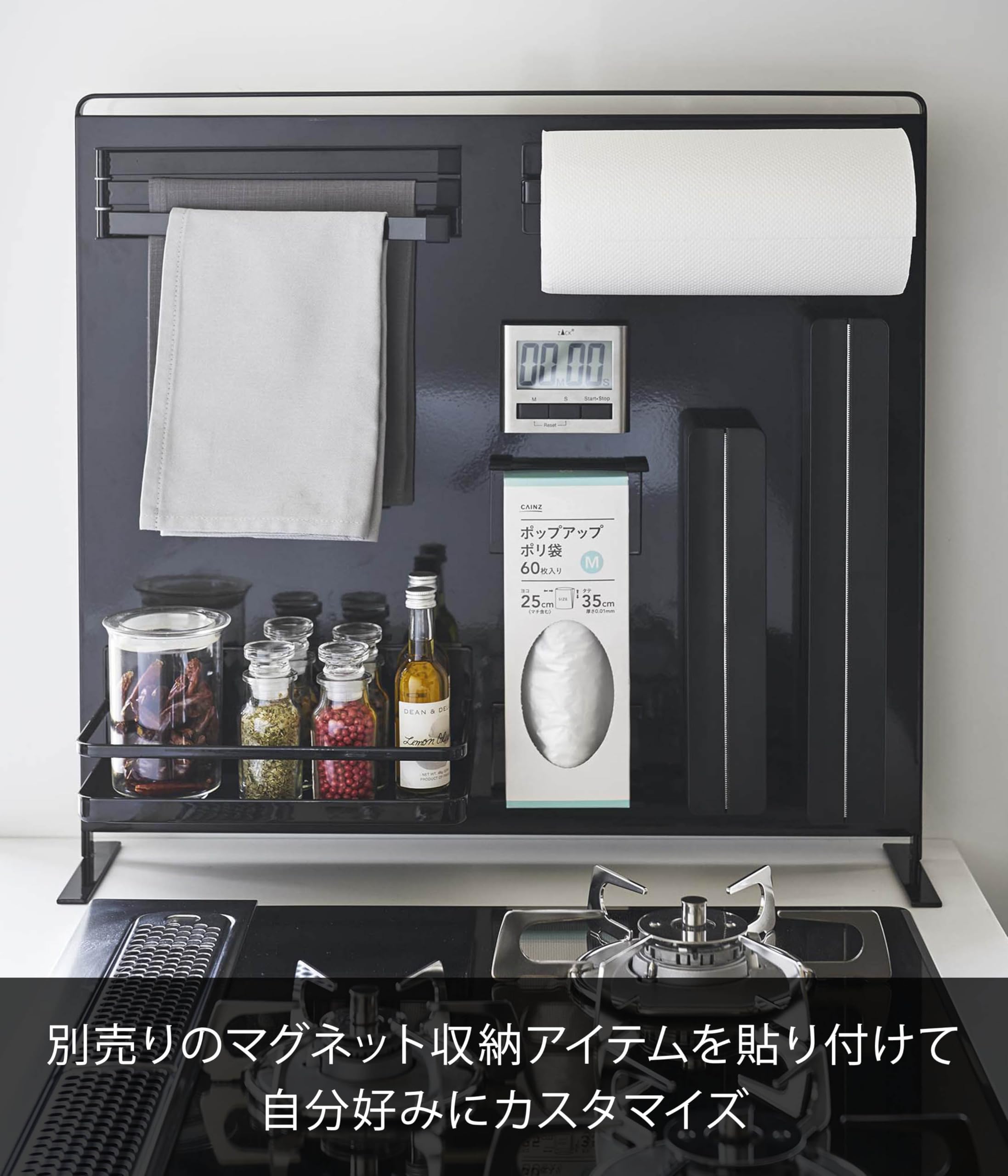別売のマグネット収納ツールを好きな位置に取り付けて、自分だけのオリジナル収納をつくれます。