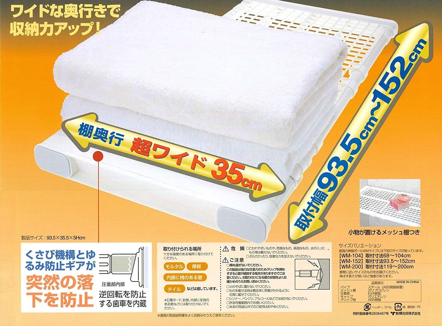 【在庫処分】トンボ 突っ張り棚 伸縮 超強力タイプ ワイド 幅93.5~152cm対応 ホワイト 伸縮ラック 新輝合成 WM-152