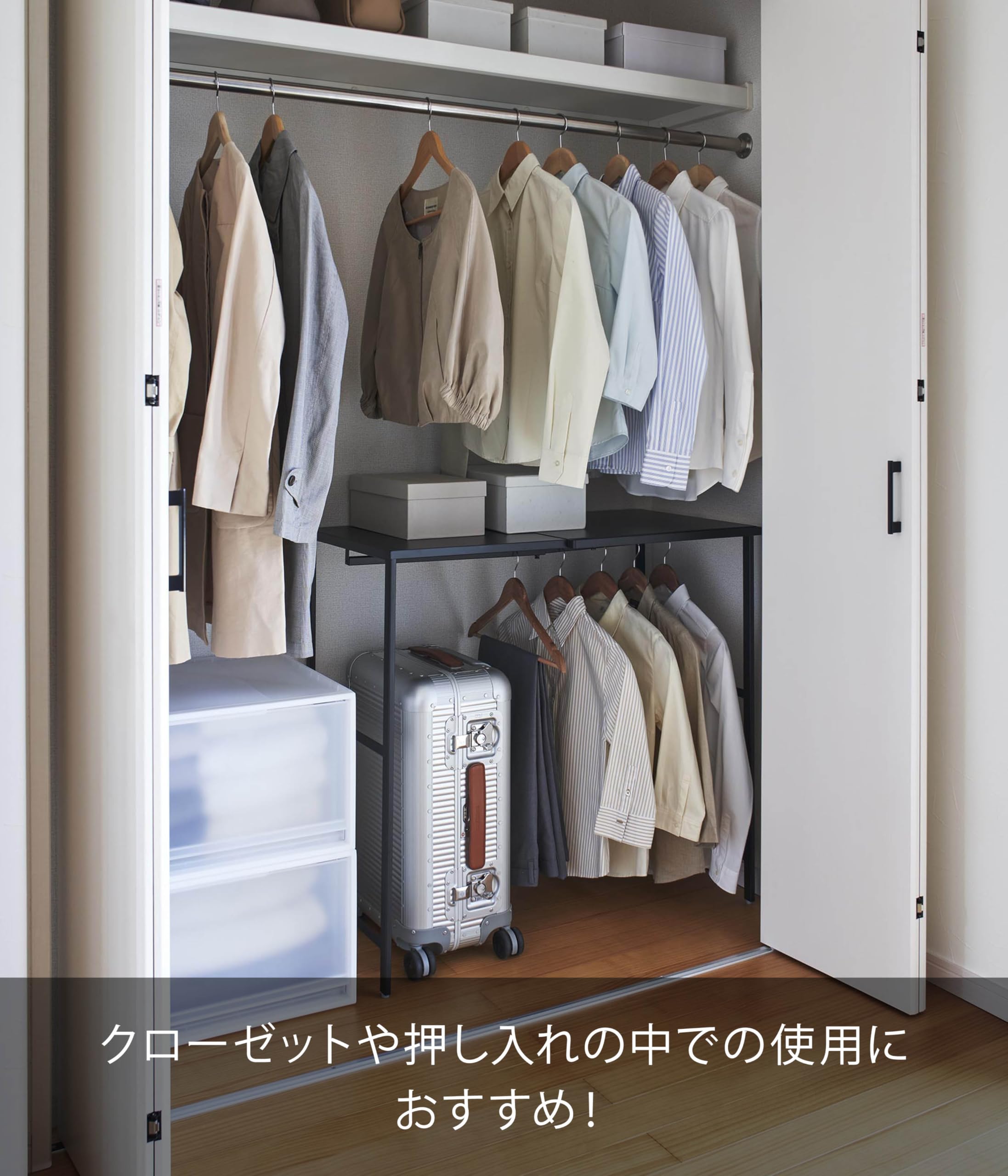 デッドスペースになりがちなキャリーケースの上を有効活用!伸縮式なので収納場所にピッタリフィット。
