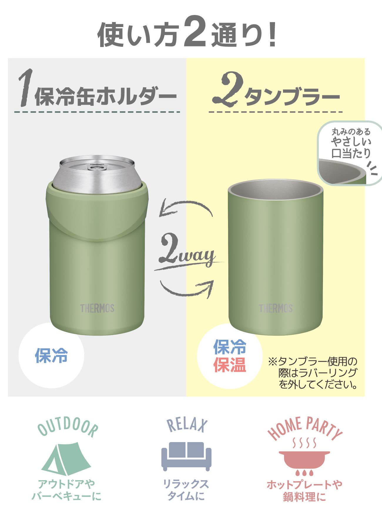 サーモス 保冷缶ホルダー 350ml缶用 2wayタイプ カーキ JDU-350 KKI