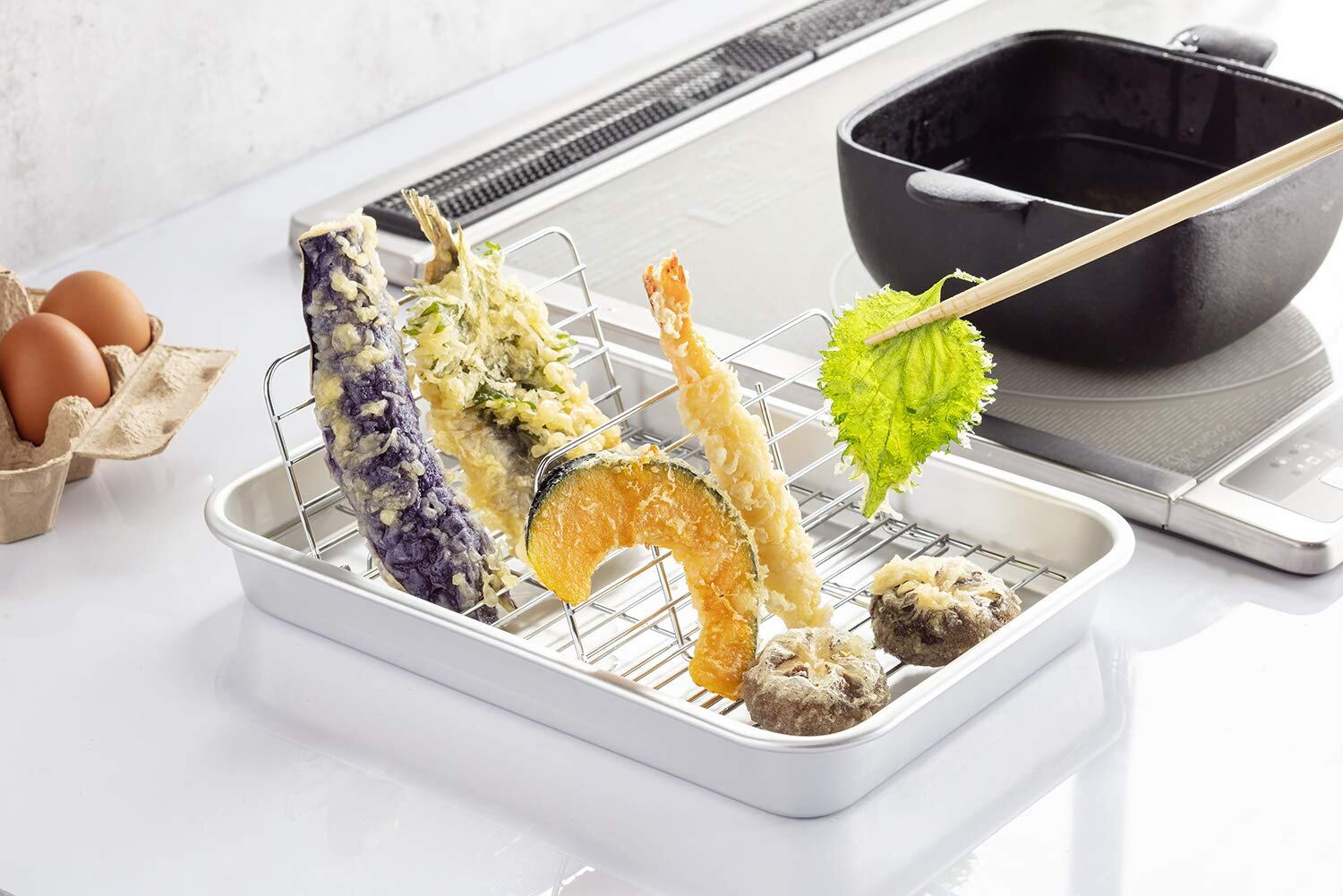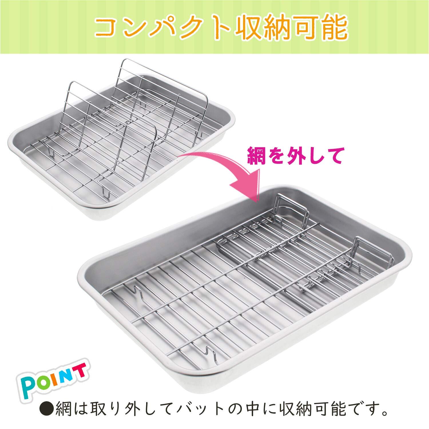 谷口金属 揚げ物を立てて油がきれる バット トレー 28.9×20.9cm S 日本製 網 取り外し可能 下ごしらえ 揚げ物名人