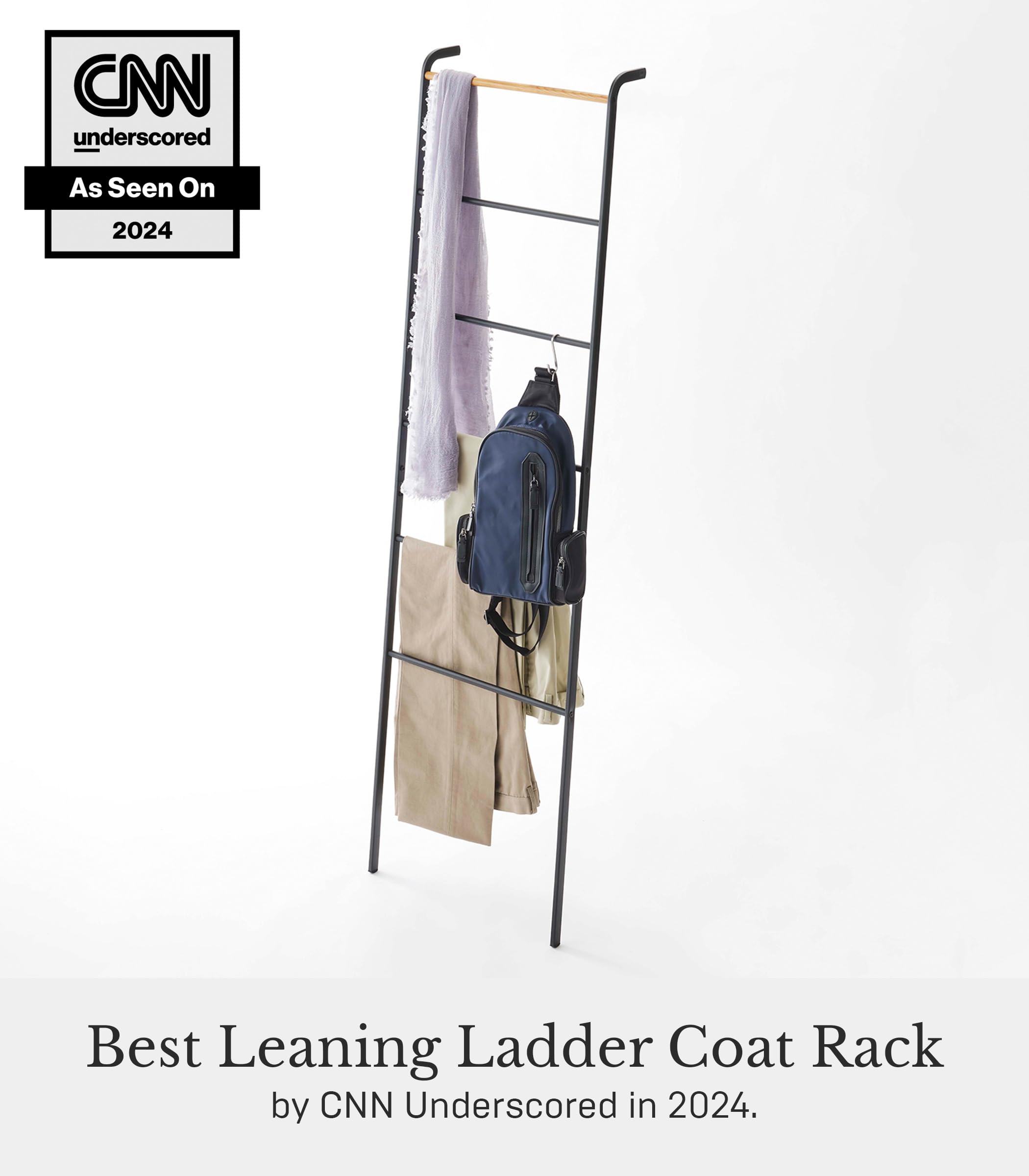 ズボンやスカーフの収納、洋服の一時掛けにも便利な立て掛けラダーハンガー。S字フックを使用すればベルトなどの小物も収納できます。タオルや衣類の一時掛けにも便利、スリムな立て掛け設計なので置く場所を選びません。