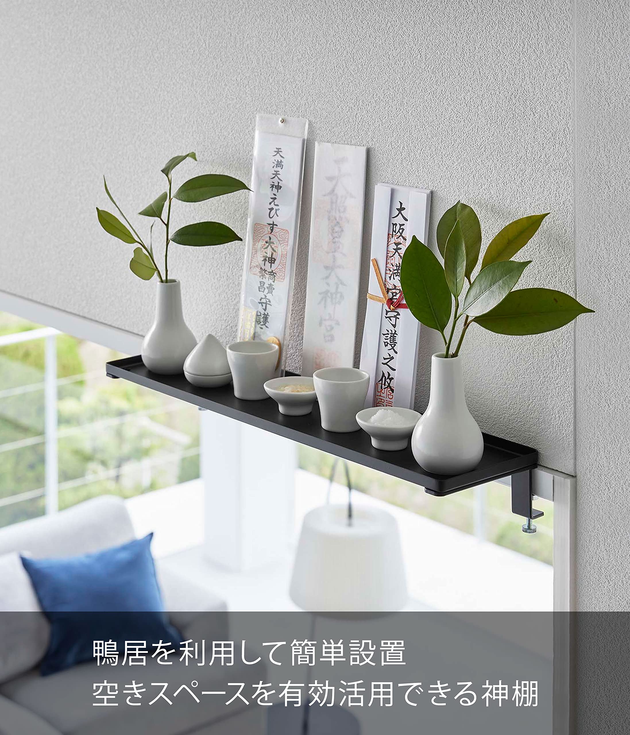 山崎実業(Yamazaki) 鴨居上 神棚 W45 ブラック 約W45×D12.5×H6.5~8.5cm タワー tower 簡易神棚 お札立て 5843