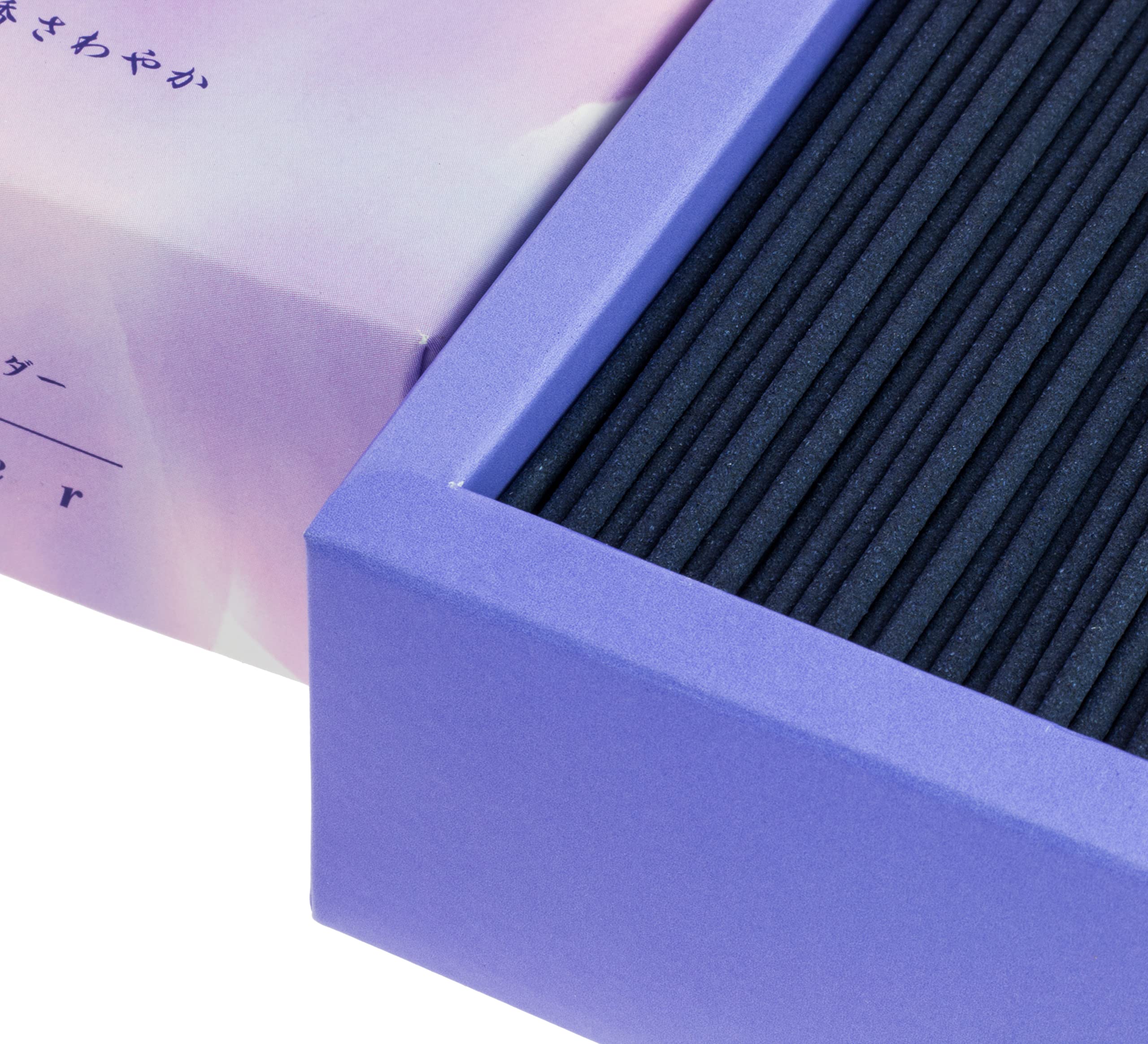 けむりの少ない、残り香が爽やかなお線香「花風 ラベンダー」です。天然のラベンダーエッセンス使用。燃焼時間約25分(立てた場合)。