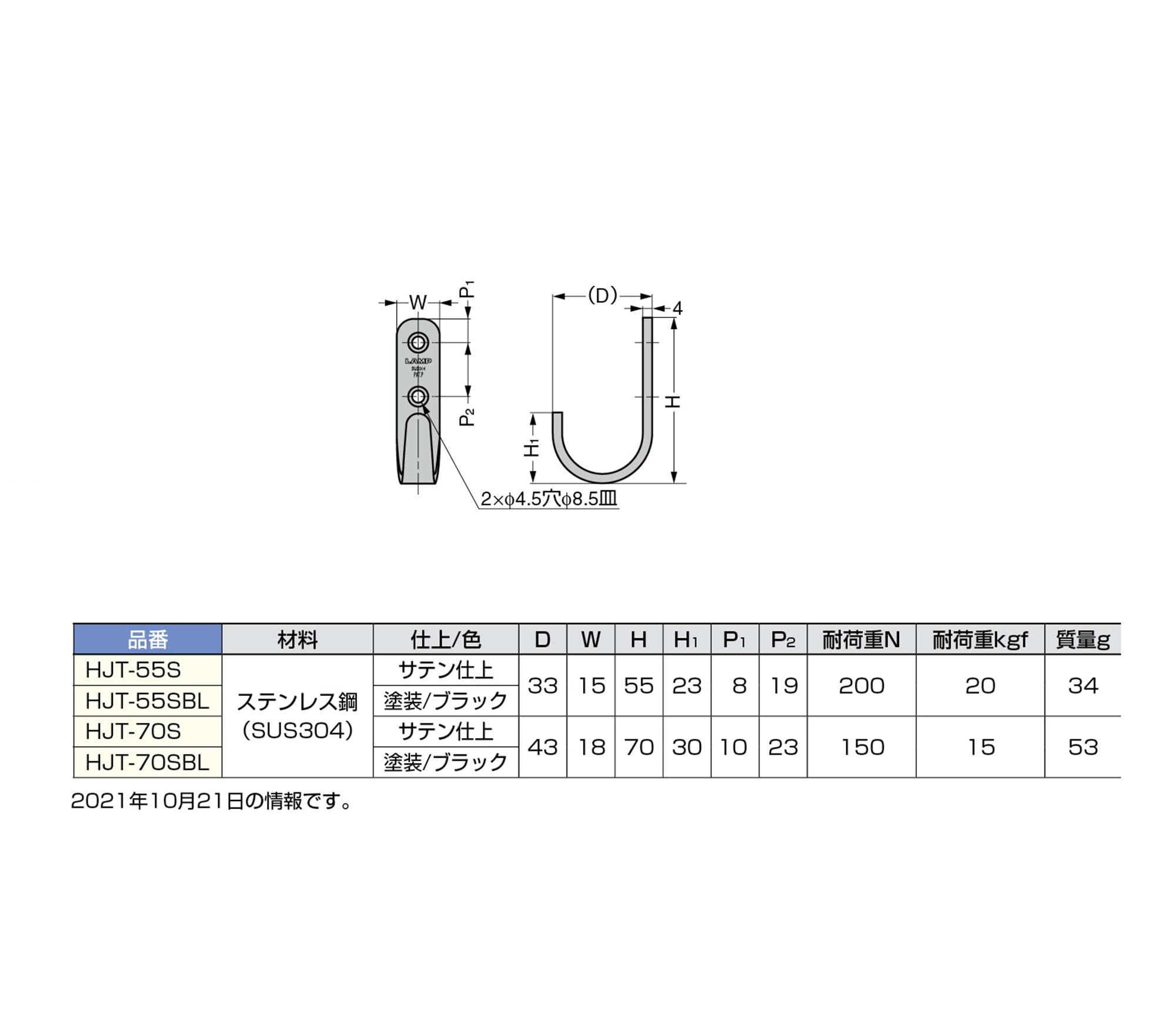スガツネ工業 ランプ印 ステンレス鋼製フック HJT型 HJT-55S