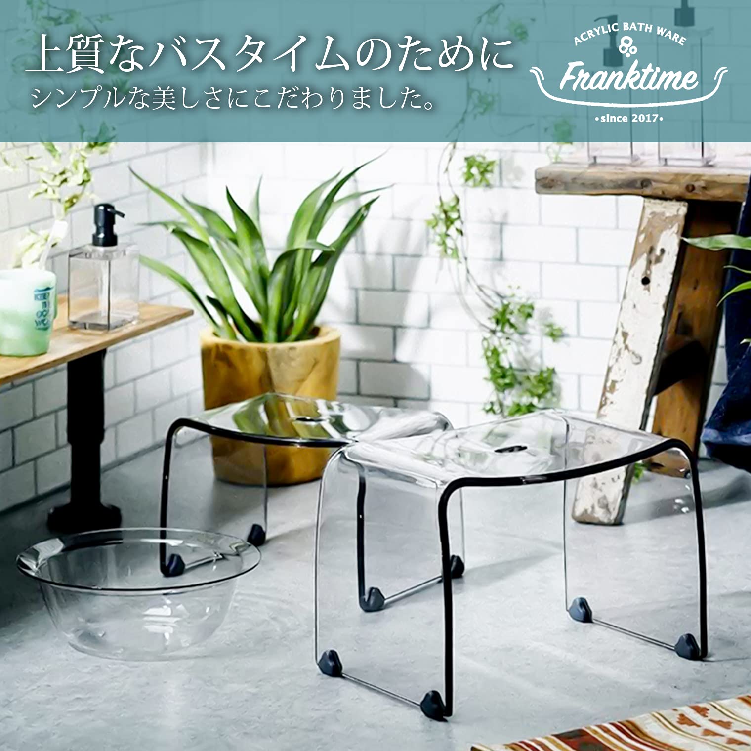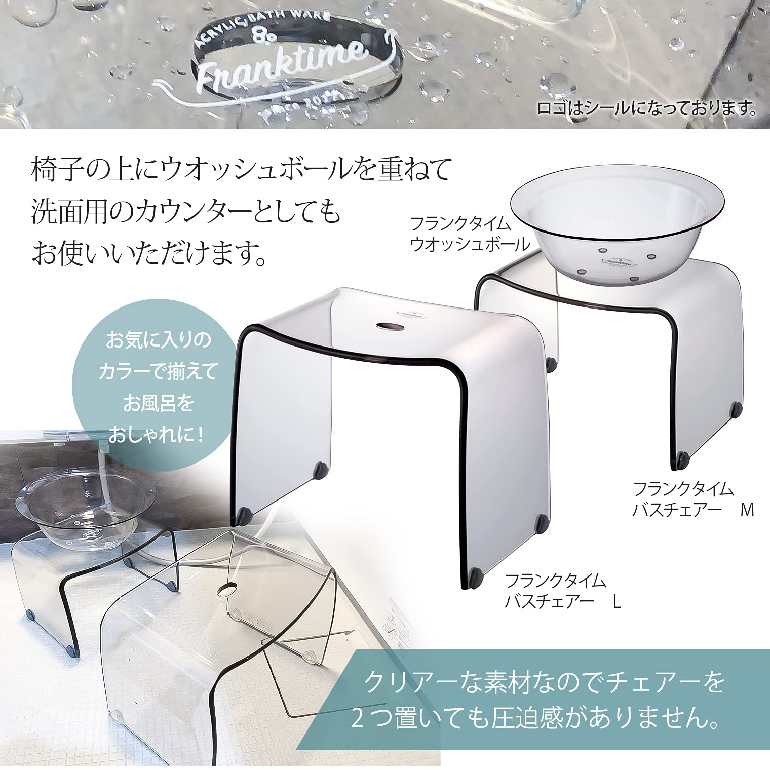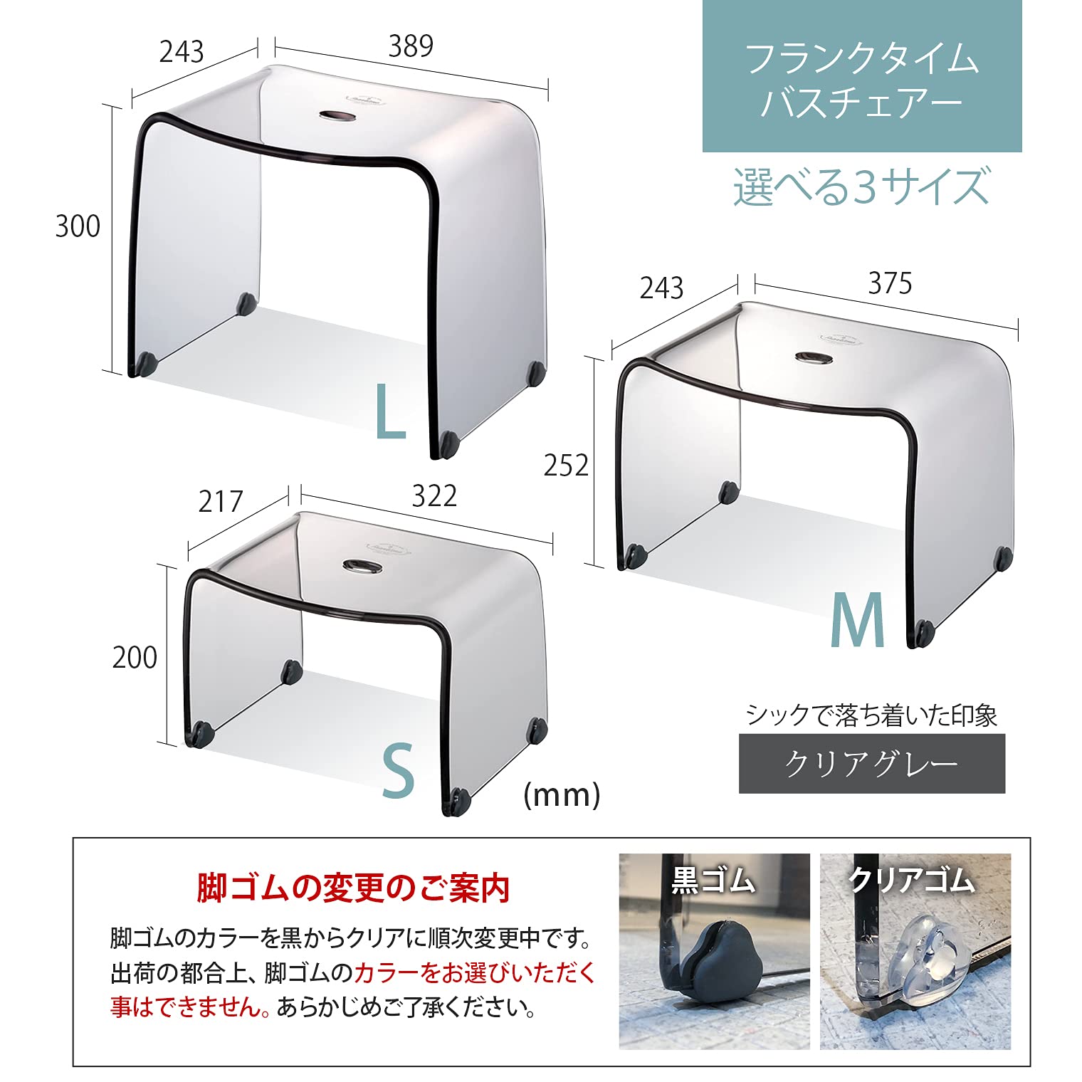 リス 風呂椅子 フランクタイム クリアグレー バスチェアーL 高さ 30cm