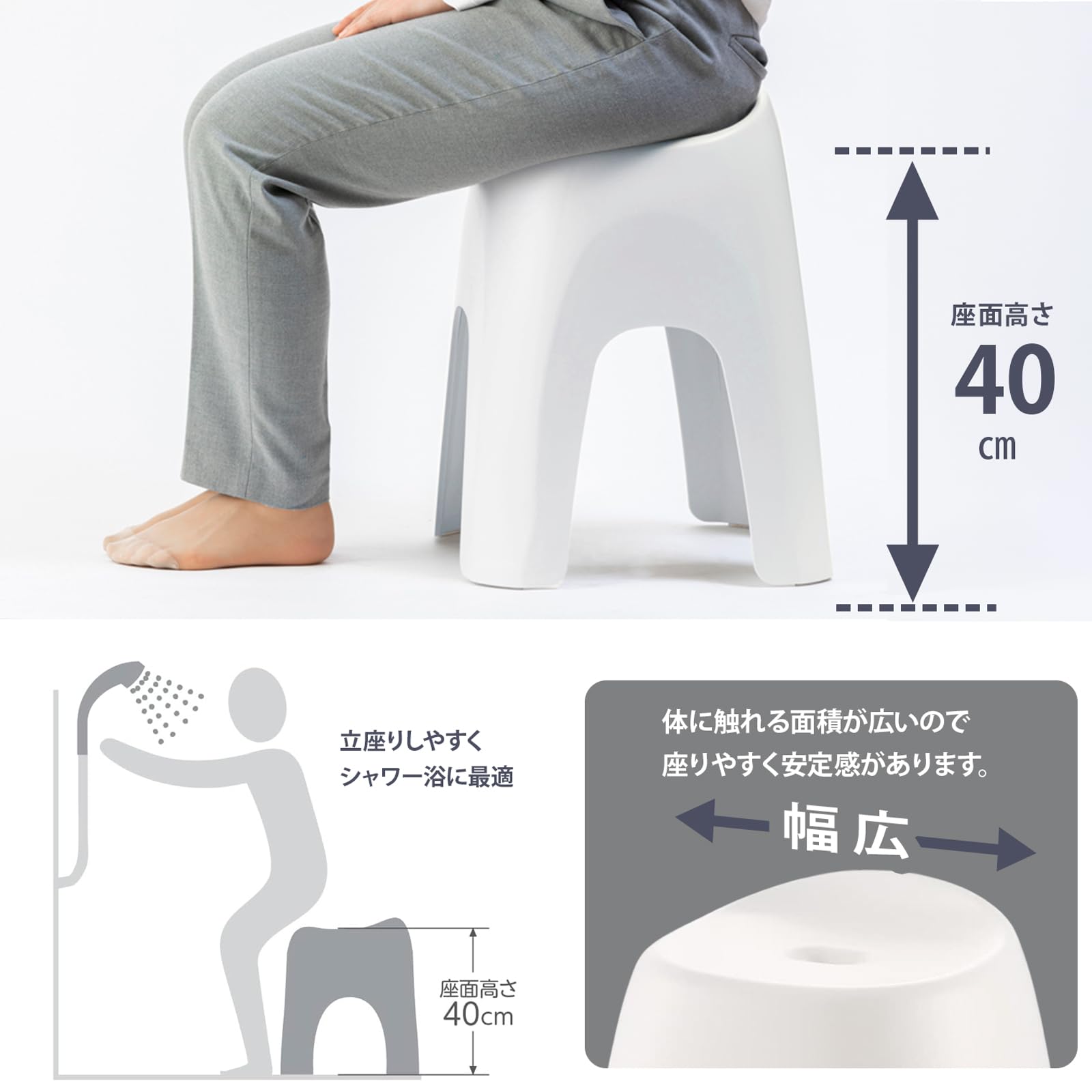 ●立ち座りしやすく、シャワー浴に最適な高さ設定