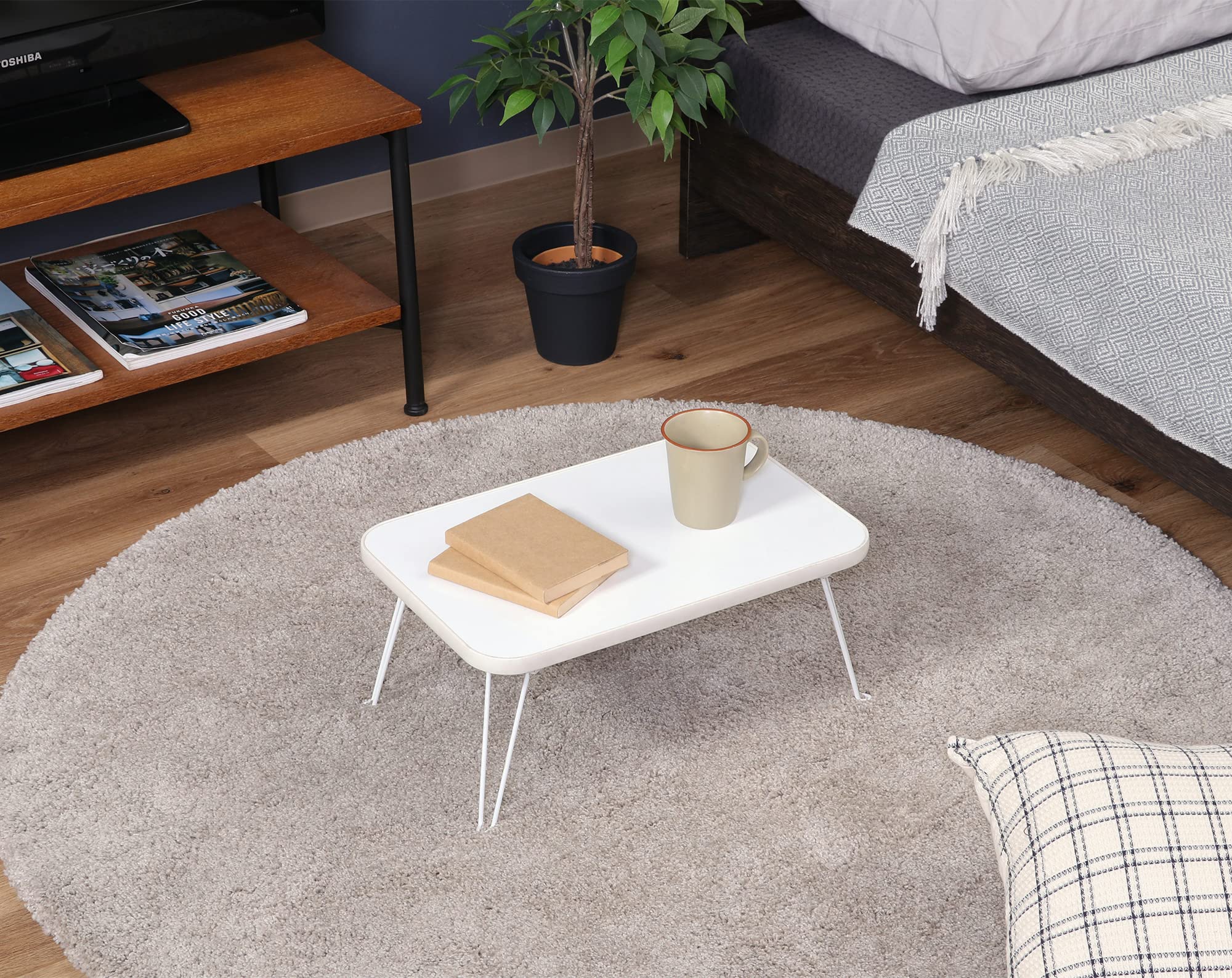 不二貿易 折りたたみテーブル 小さめ ローテーブル ミニ 角が丸い アウトドア ピクニックテーブル 幅45×奥行30×高さ19cm ホワイト 完成品 14421