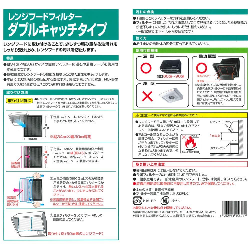 エムエーパッケージング レンジフードフィルター ダブルキャッチタイプ 日本製 ホワイト 34×30.5cm ダブルキャップ