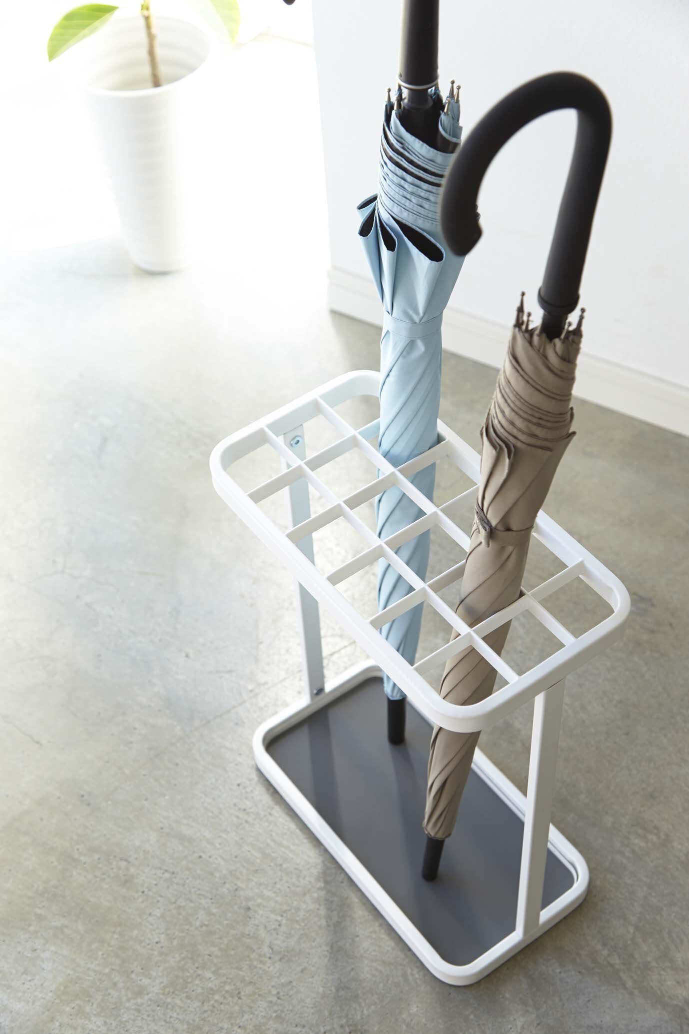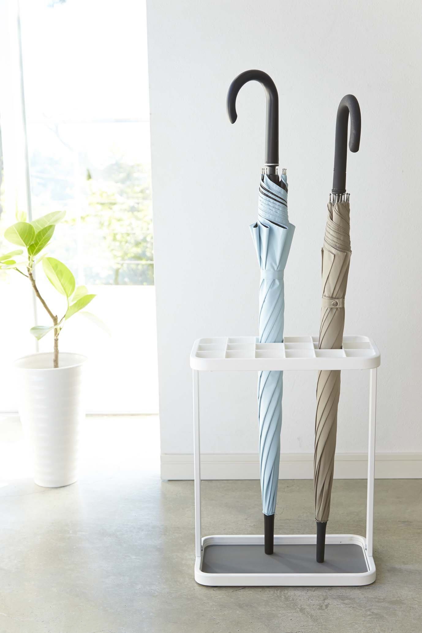 差し込み口が1本づつ仕切られている、大容量の傘立て。オフィスや店舗にぴったり! コンパクトでスリムなデザインなので、玄関スペースを有効活用できます。