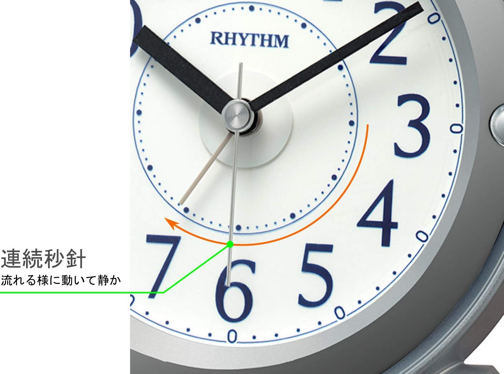 【最新特価】リズム(RHYTHM) 目覚まし時計 アナログ 電子音 アラーム 連続秒針 ライト付き シルバー 8RE679SR19 12.4x12x7.5cm