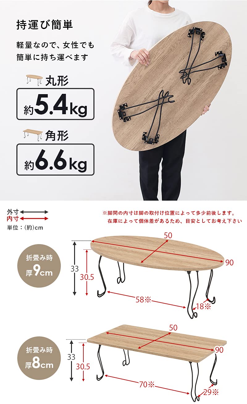 【折りたたみ式&軽量タイプ】:重量は約6.6kgと女性でも運びやすい仕様。模様替えやお掃除の際も簡単に移動していただけます。