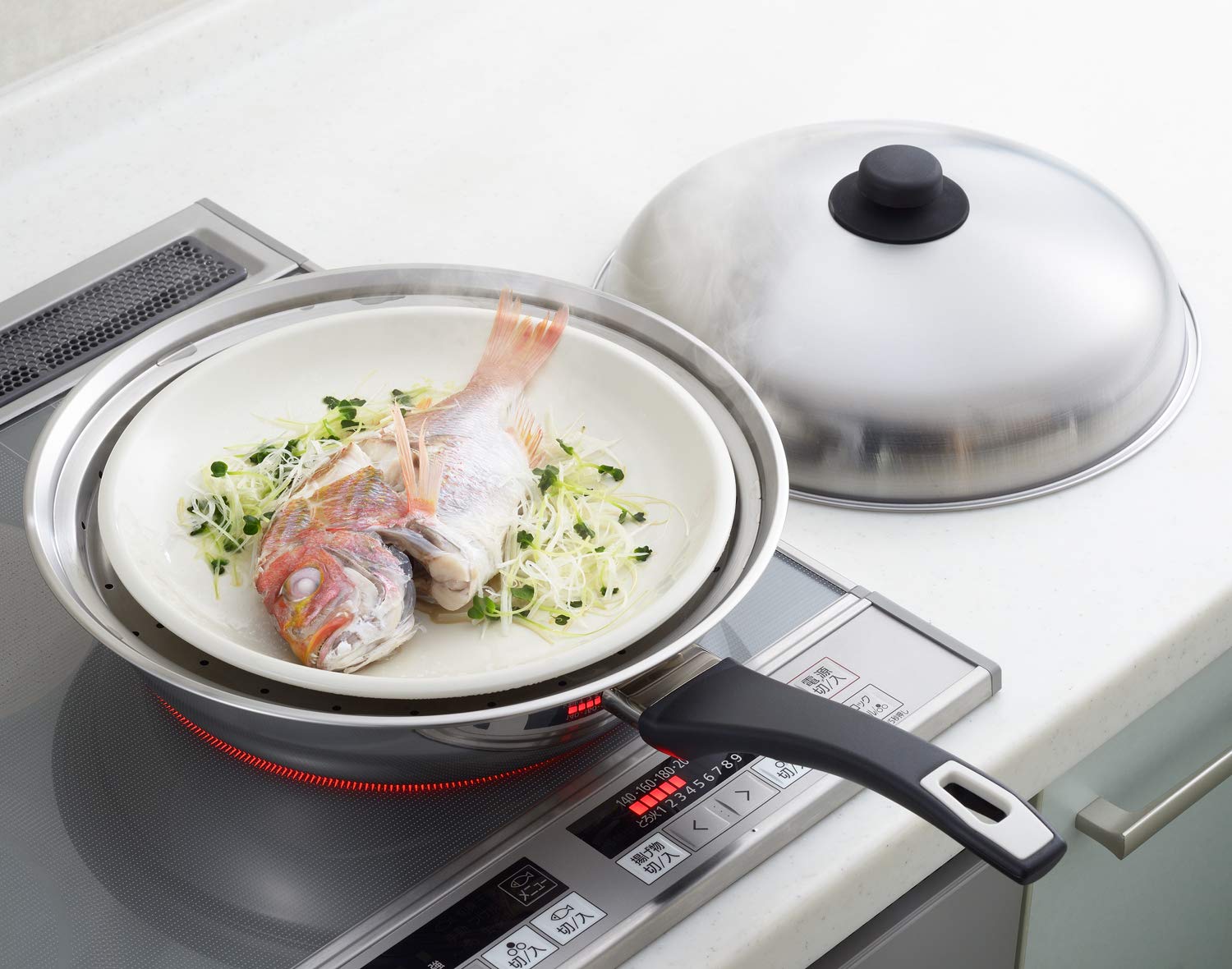 お手持ちのフライパンにのせるだけで蒸し器に早変わり!