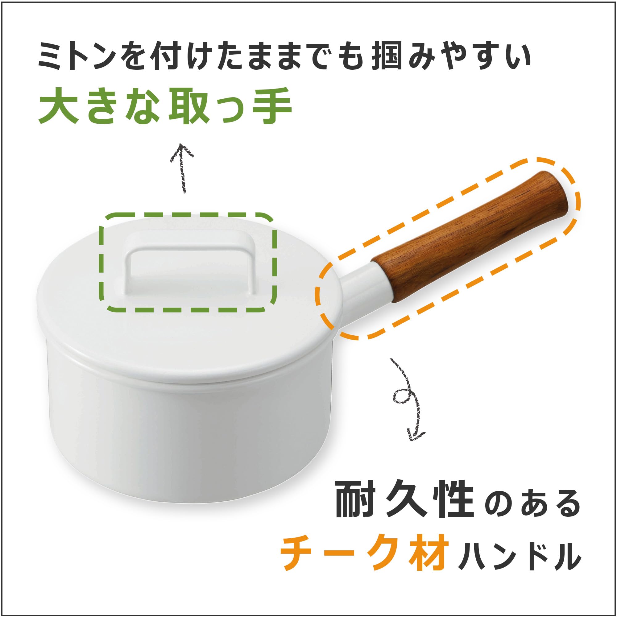 ハンドルの琺瑯部分を長めに設計、熱が伝わりにくい