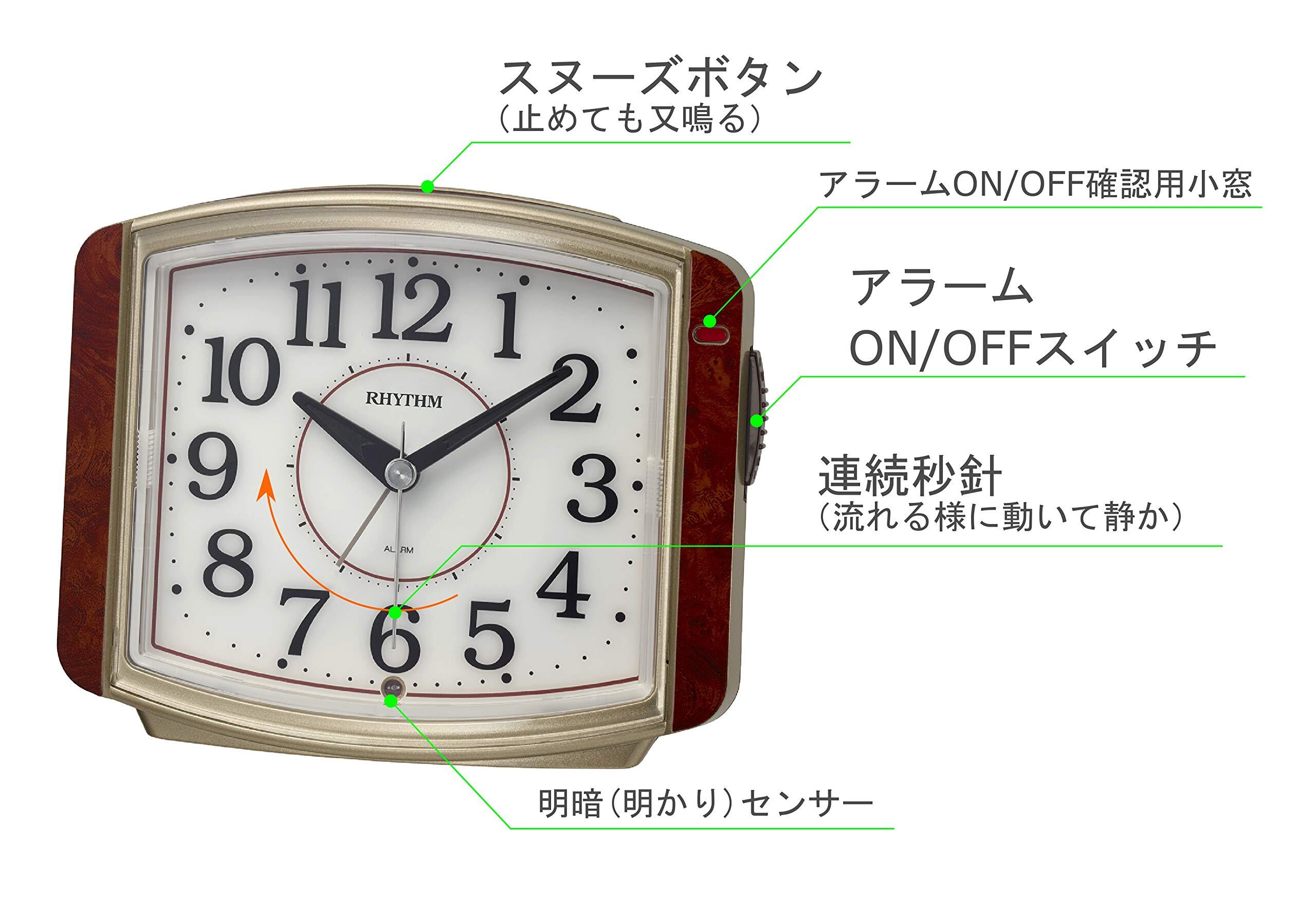 リズム(RHYTHM) 目覚まし時計 アナログ 電子音アラーム 暗所 ライト 自動 点灯 連続秒針 ブラウン 11.1x13.7x7.3cm 8RE644SR23