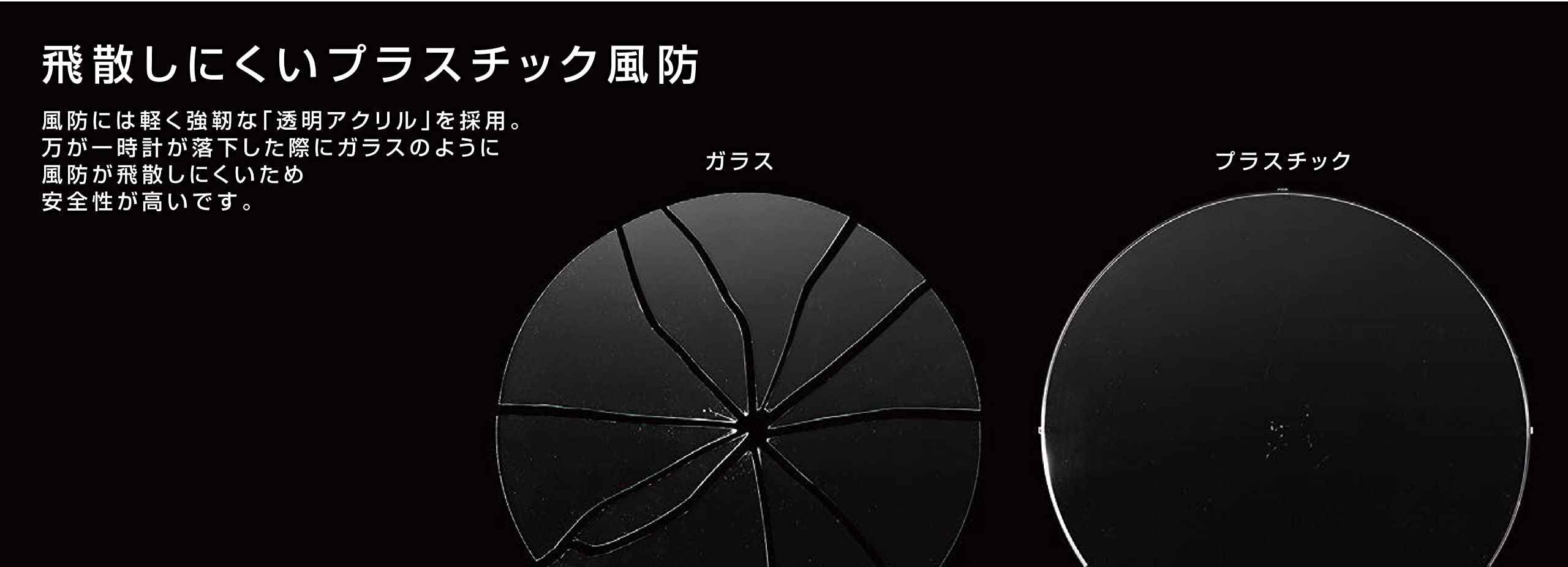 万一割れても飛散しにくいプラスチック製風防を使用しています。