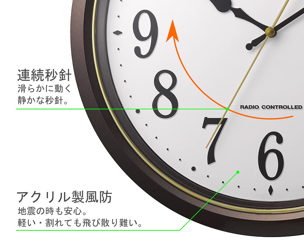 秒針:連続秒針(滑らかに動いて静か)
