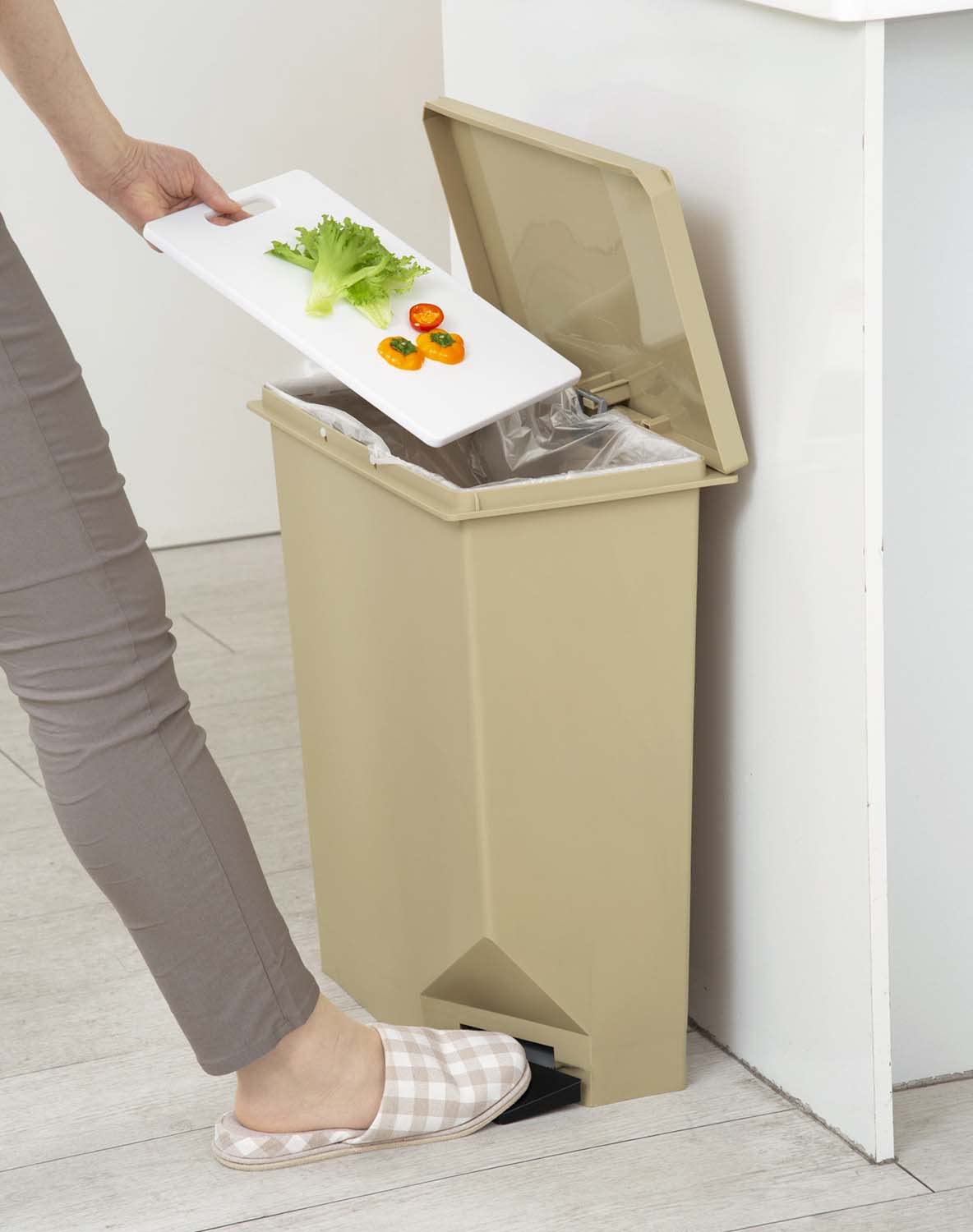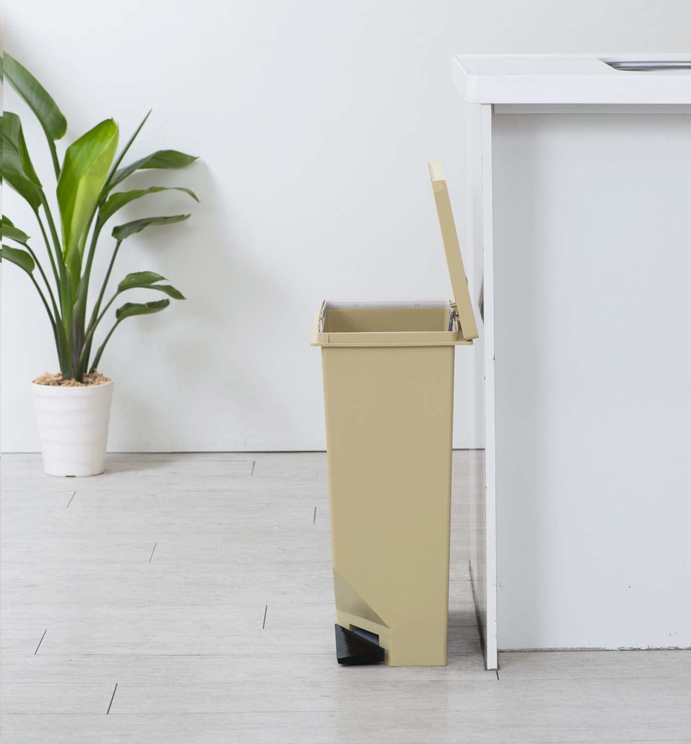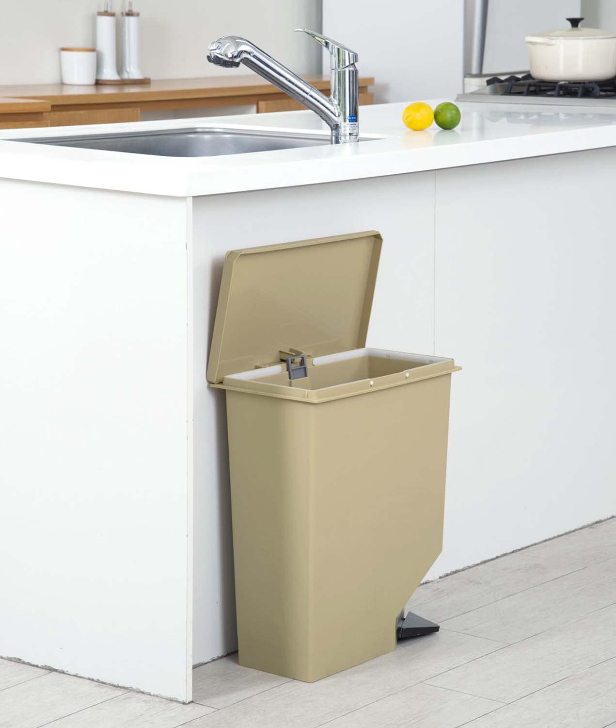 【限定特価】新輝合成(Shinki Gosei) トンボ ユニード ゴミ箱 35リットル 軽いペダルでサッと開く スイッチペダル カーキ 奥行45×幅25×高さ53cm カウンター下 にも置ける 蓋付き 日本製 | ももくま屋さん