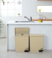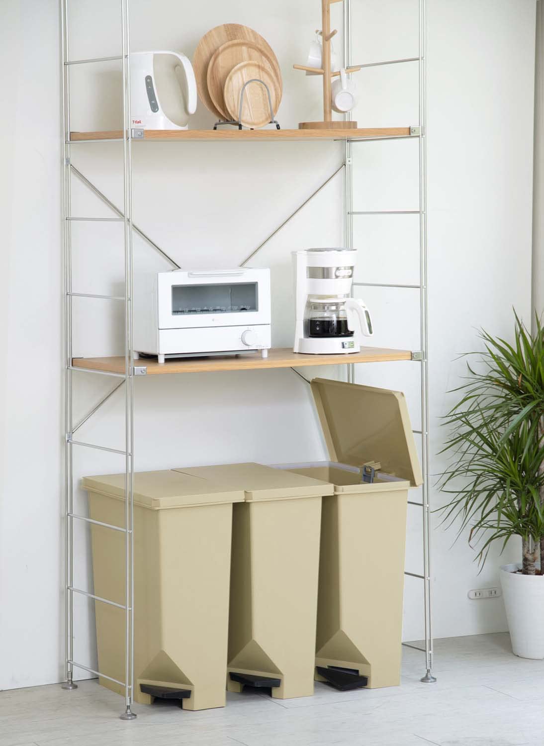 縦置き、横置き、置く方向を選べるスイッチペダル式ペール<br>キッチンやダイニングのレイアウトに合わせて設置できる