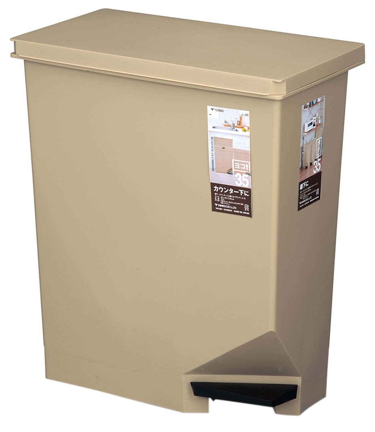 新輝合成(Shinki Gosei) トンボ ユニード ゴミ箱 35リットル 軽いペダルでサッと開く スイッチペダル カーキ 奥行45×幅25×高さ53cm カウンター下 にも置ける 蓋付き 日本製