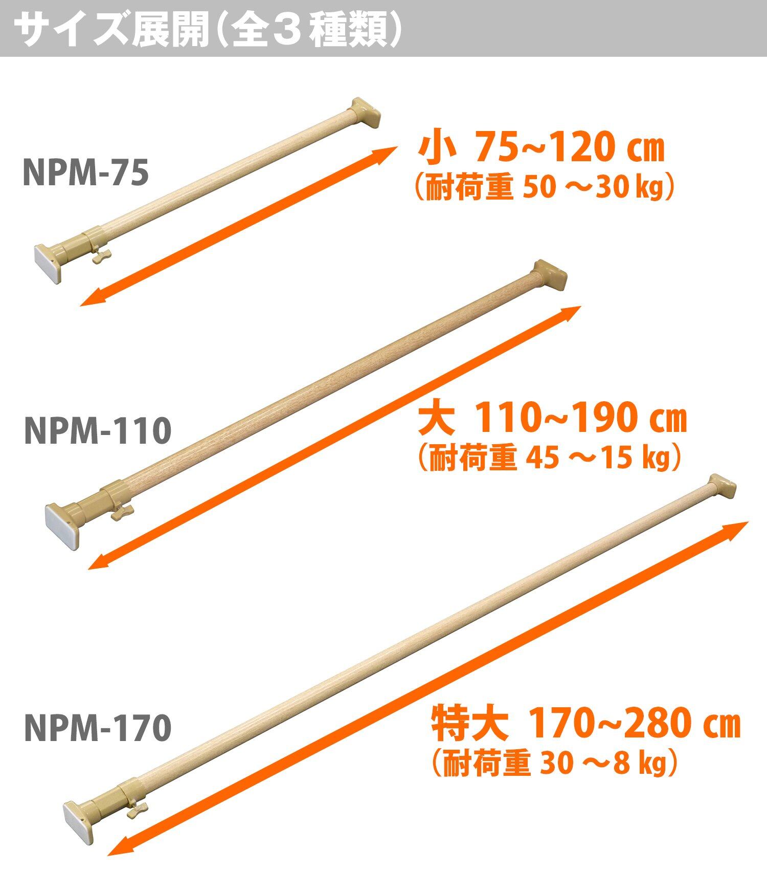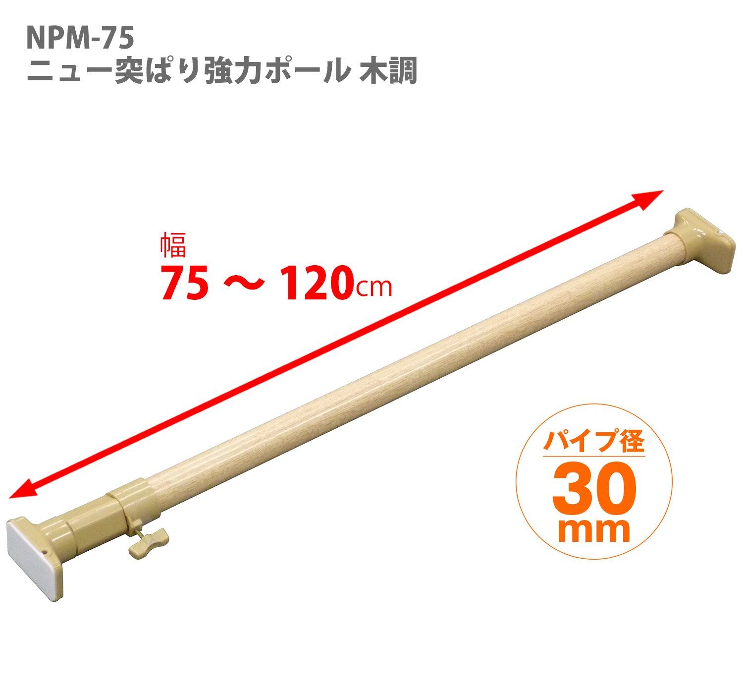 【最新商品】HEIAN SHINDO つっぱり棒 ジャッキ式超強力タイプ 木目 幅75~120cm 耐荷重50~30kg パイプ直径3cm NPM-75 平安伸銅工業
