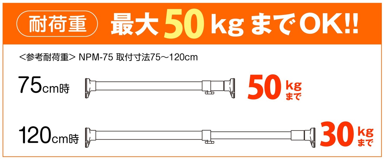 【耐荷重】75cm時50kgまで / 120cm時30kgまで【本体重量】0.10kg