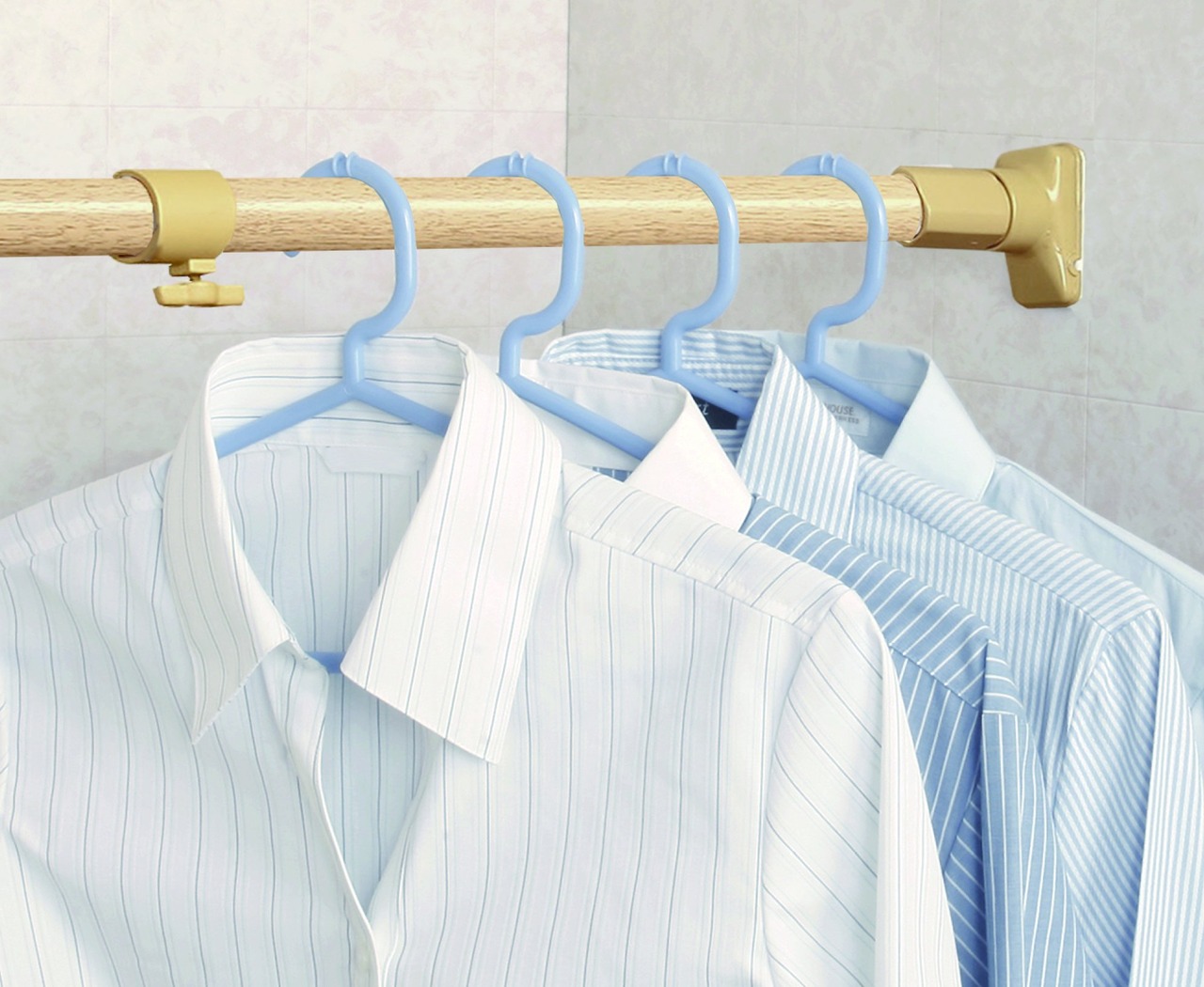強力ジャッキで圧着固定。耐荷重最大50kgの超強力タイプだから、バッグやスーツも安心して掛けられる。洗濯物の室内干しにも便利。