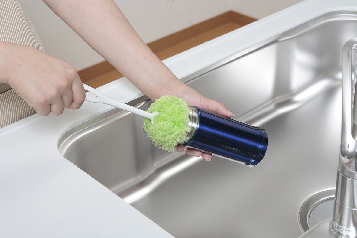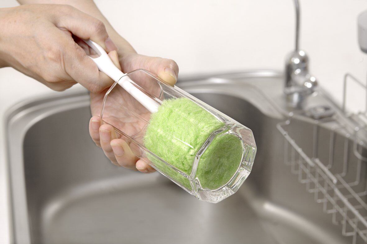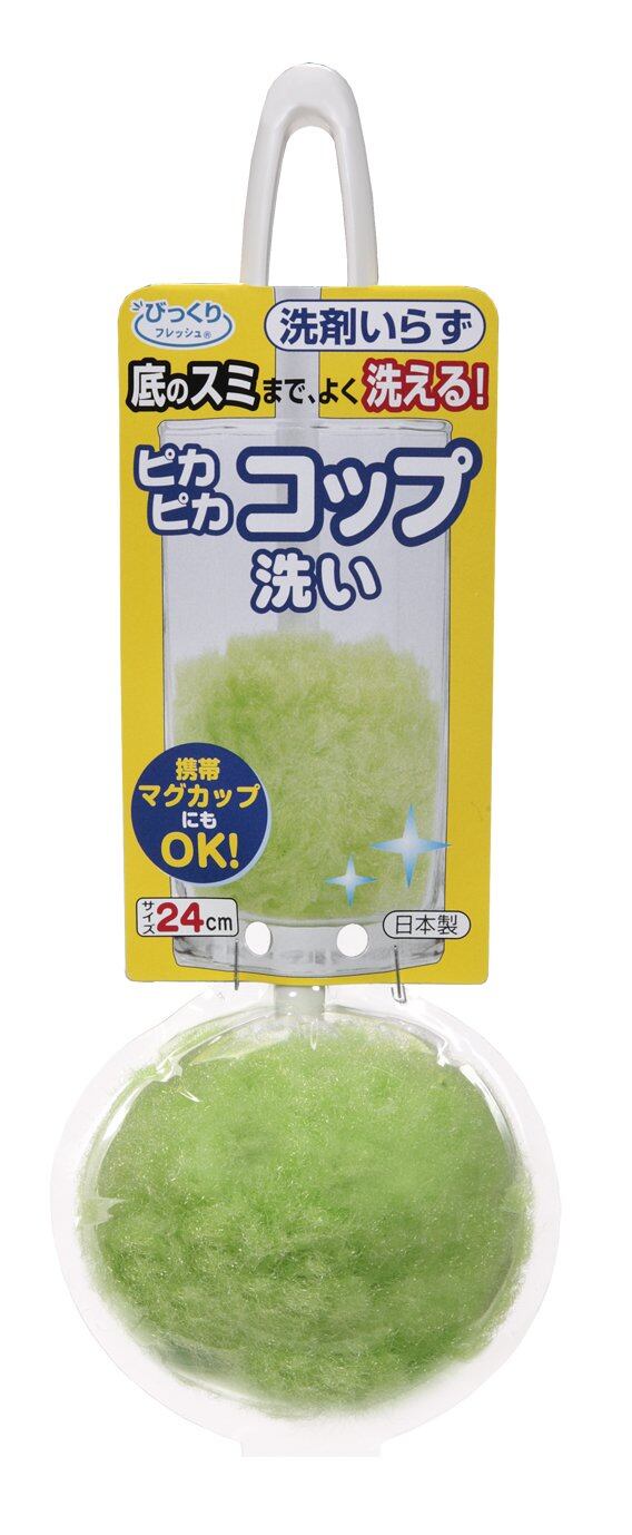 特殊繊維を使用した水だけでも汚れが落とせる、柄付きのコップ洗いです