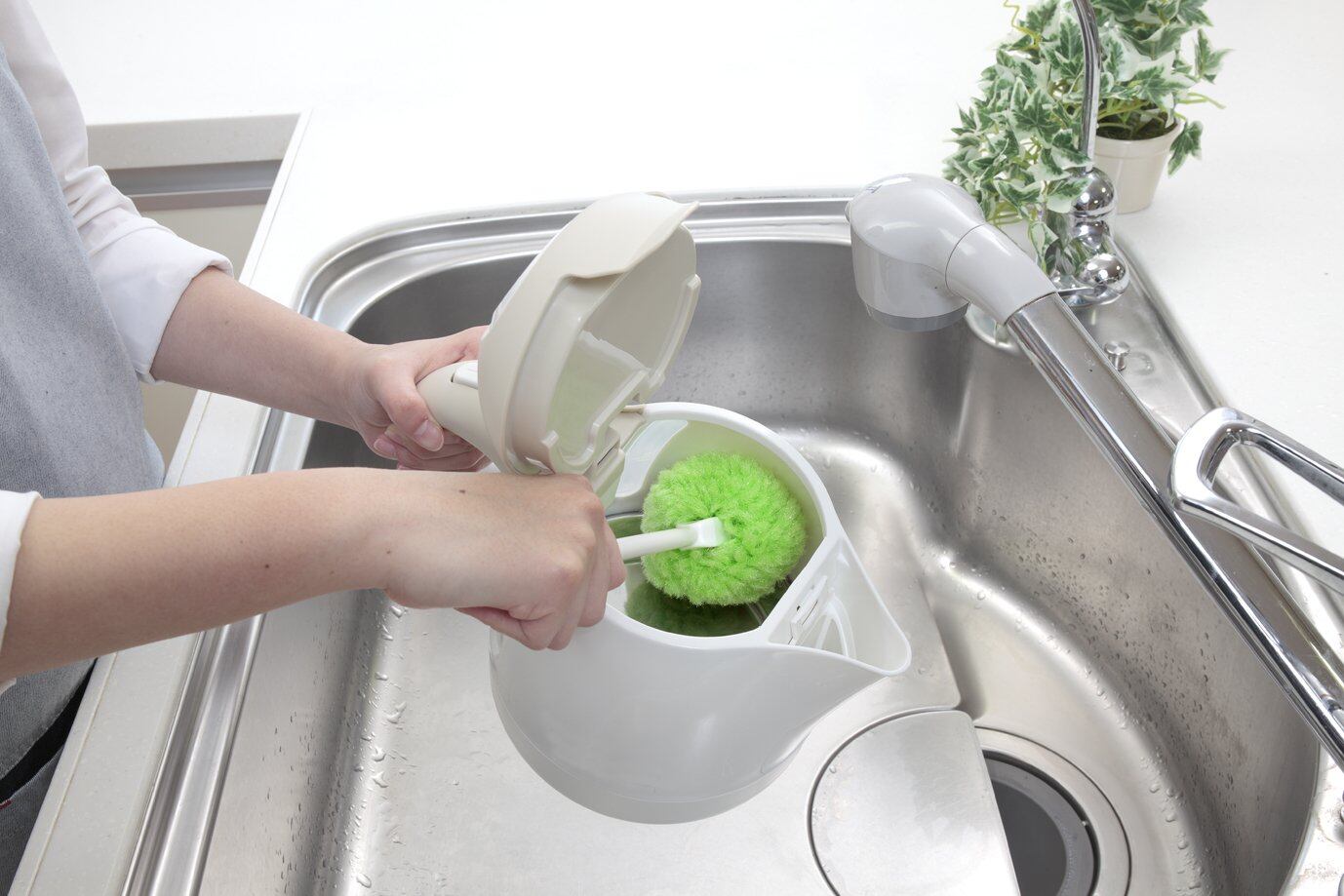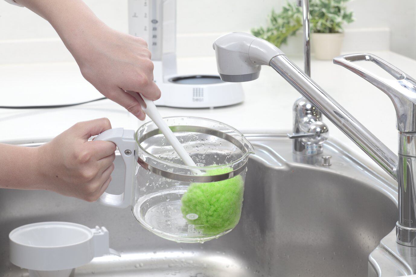 ・従来のブラシやスポンジのコップ洗いでは、コップの底のスミまで洗えないという不満解消をするために、コップの底のスミまで洗えるような構造にしました。